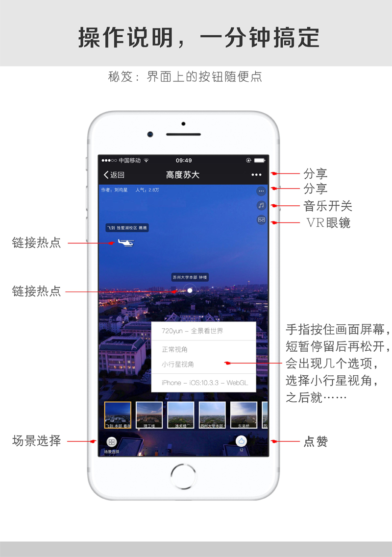 站在100米高空欣赏leyu·乐鱼(中国)体育官方网站会是什么样呢? 高度苏大,让飞行器在百米高空拍摄leyu·乐鱼(中国)体育官方网站,采用VR全景技术,让您站在上帝的高度、选择不同的季节不同的时段、全方位多角度欣赏校园的美景,从一个非常的高度展示苏大魅力。 高度苏大首期展现leyu·乐鱼(中国)体育官方网站三个校区的白天景象和夜景,并将继续增加不同主题的全景。