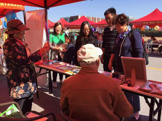 值得一提的是,本次的“建筑街”活动,不仅是建筑学院的老师同学们全心地投入,也得到退休老师的支持。学院退休教师孙觉已经80高寿,活动当天不仅早早到达现场和学生交流互动,还带来了自己平时制作的精美手工画作,得到同学们的欢迎。孙老师不仅免费送书签,还亲自手把手教学生制作,耐心而细致。除了学生工作团队的薛曦、徐娜、成龙、甘露四位老师全程指导参与之外,退休老师朱军贞,学院教师叶露、马建武、王珲、郑丽、刘宁捷老师以及不少校友也相继来到“建筑街”,与同学们共享创意,共度嘉年华。