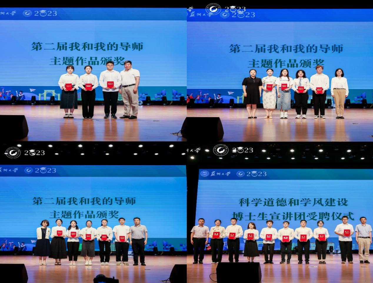 活动现场,还举办了省级荣誉称号获得者颁奖仪式、第二届“我和我的导师”主题获奖作品颁奖仪式和2022年科学道德和学风建设博士生宣讲团讲师聘任仪式,激励研究生心怀“国之大者”,发扬“四敢”精神,坚守科学道德,树立尚学之风,勇立潮头、敢为人先。