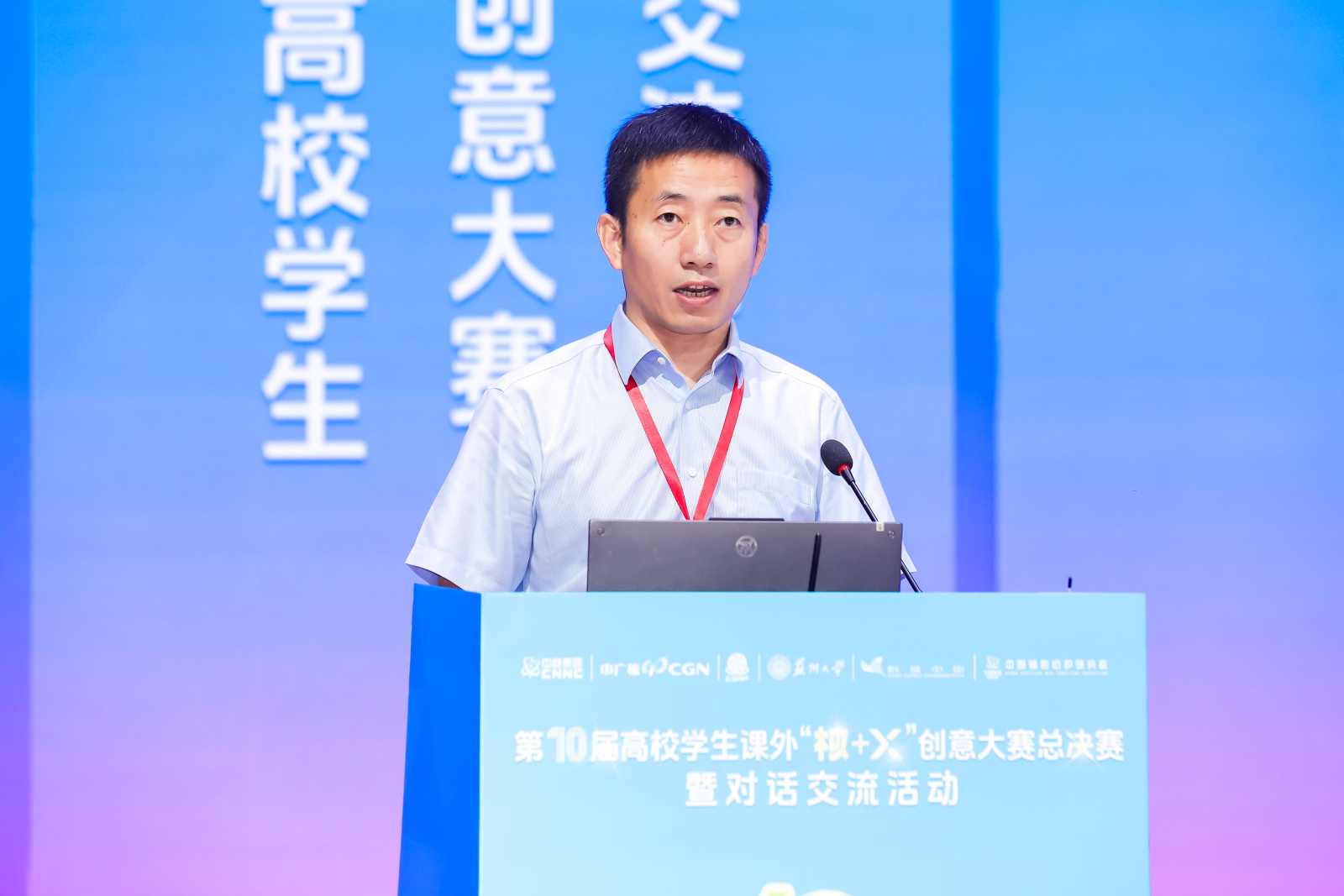熊攀向进入决赛的学生致以热烈祝贺。他指出,国家原子能机构新闻宣传中心始终高度重视涉核新闻宣传科普文化工作,为核事业发展提供坚强的思想保证和强大的精神动力。未来将一如既往支持“核+X”创意大赛的举办,希望同学们以本次大赛为新起点,胸怀“国之大者”,将个人理想融入国家需求,把论文写在祖国大地上,把实验做到产业需求端,让核技术更好服务健康中国、美丽中国、平安中国。