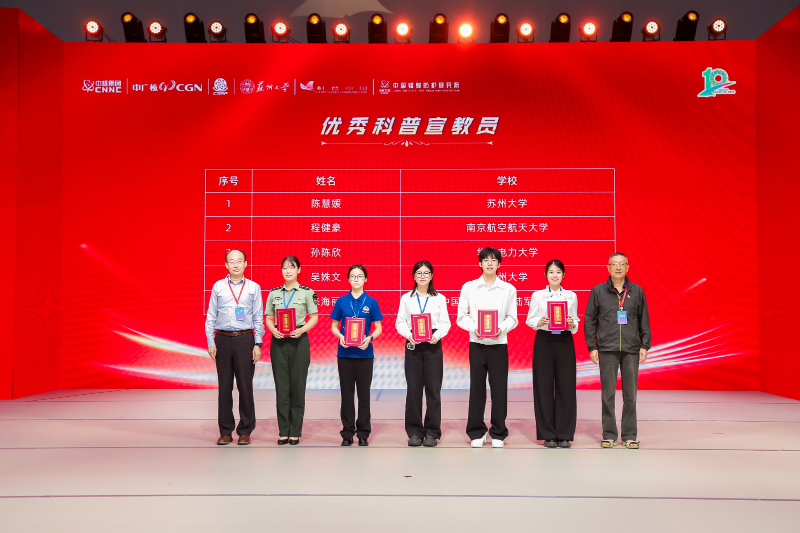 山东省核学会、湖北省核学会、陕西省核学会、湖南省核学会、北京核学会、山西省核学会、黑龙江省核学会、江苏省核学会、广东省辐射防护协会等单位的代表,清华大学、复旦大学、中国科学技术大学、哈尔滨工程大学、南京航空航天大学、西南科技大学、西安交通大学、吉林大学、南华大学、华北电力大学、陆军军医大学、哈尔滨工业大学、核工业学院、兰州大学等高校代表和参赛师生,leyu·乐鱼(中国)体育官方网站学生代表、苏州市中小学生代表等共计800余人共同参加活动。
