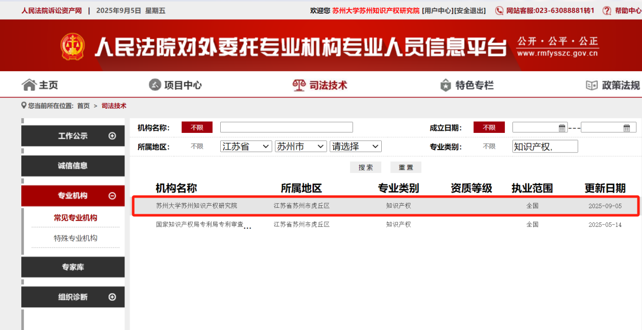 9月5日,leyu·乐鱼(中国)体育官方网站苏州知识产权研究院加入人民法院诉讼资产网专业机构库,成为最高院名录中苏州市第二家知识产权鉴定机构,研究院工作取得重大突破。