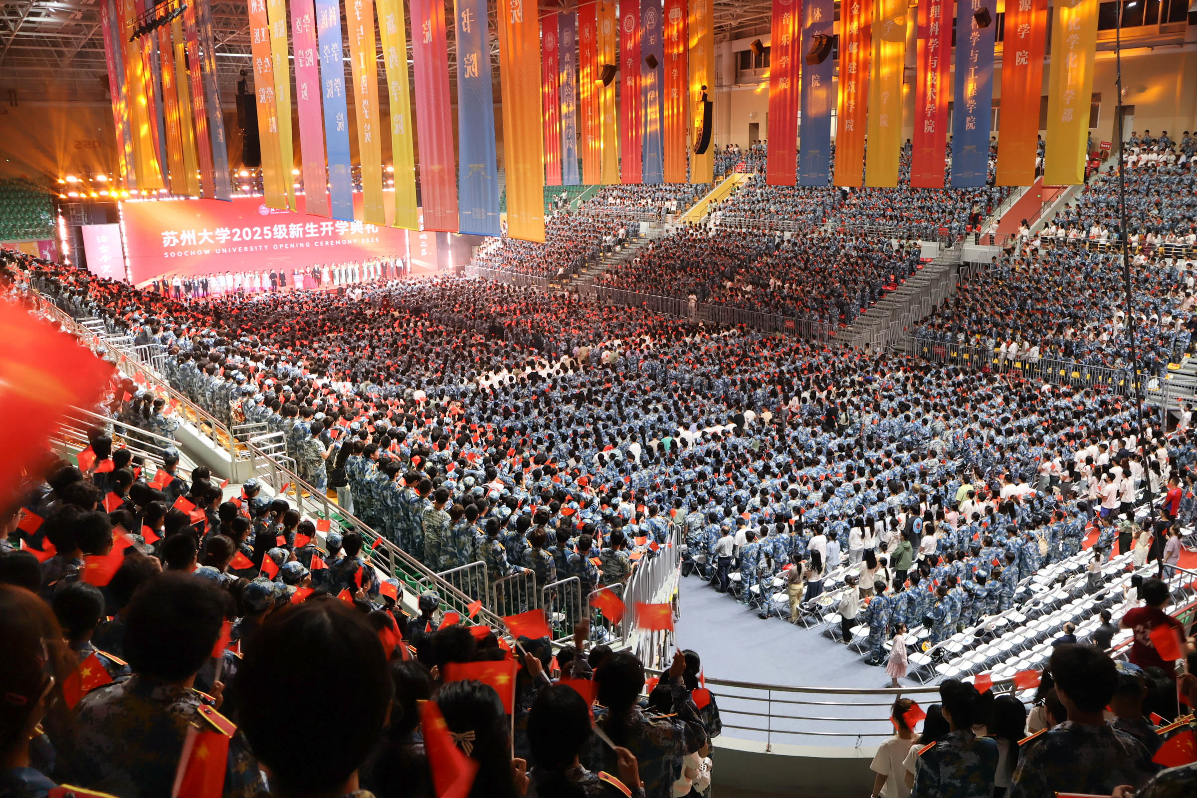 开学典礼上,校长张桥以《日拱一卒,在苏大成为更好的自己》为题,为新生们讲授“开学第一课”。