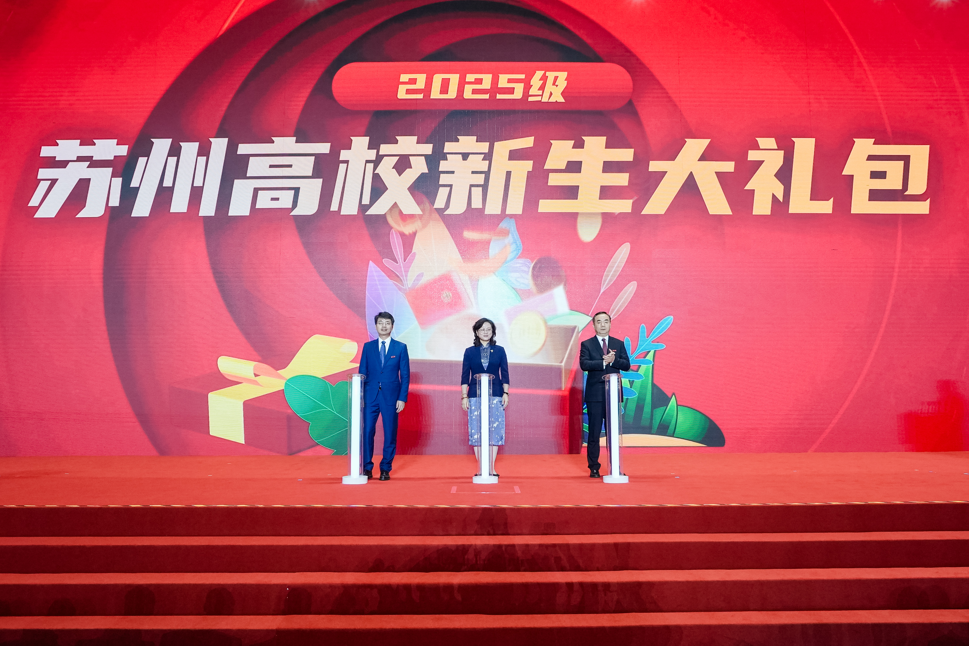 名城育名校,名校润名城。为欢迎2025级新生来到苏州这片热土,苏州市委、市政府特别准备了一份满载心意的“新生礼包”,由市委常委、宣传部部长金洁与校领导共同开启。