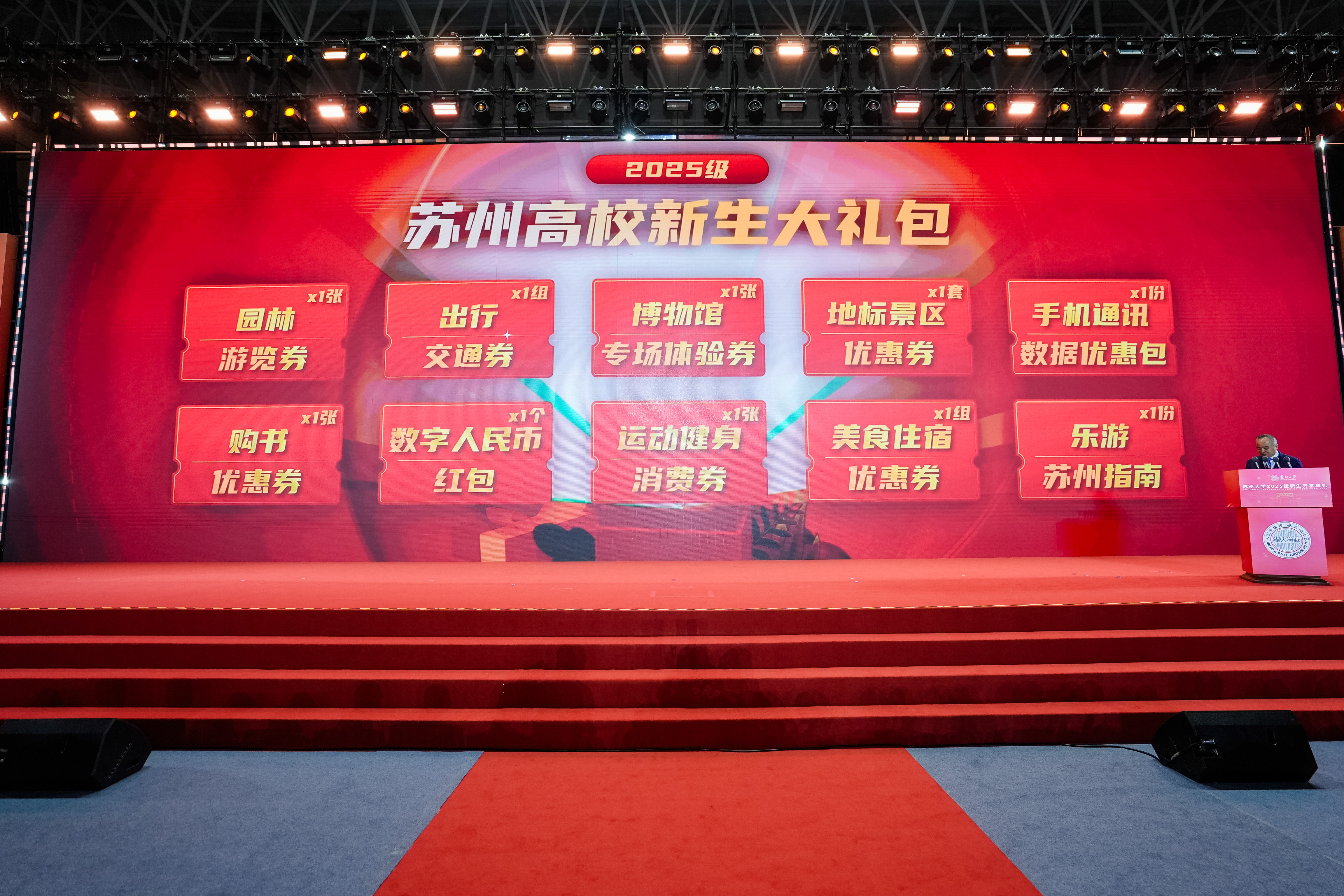 据悉,“新生礼包”中包含一张园林游览券、一组出行交通券、一张博物馆专场体验券、一套地标景区优惠券、一份手机通信数据优惠包、一张购书优惠券、一个数字人民币红包、一张运动健身消费券、一组美食住宿券、一份乐游苏州指南等十份礼物,愿每位苏大学子以这份“新生礼包”为起点,在触摸城市肌理中感知底蕴,在品读江南文脉中涵养情怀,在扎根这片热土中追逐理想,在奋斗青春岁月中实现价值。