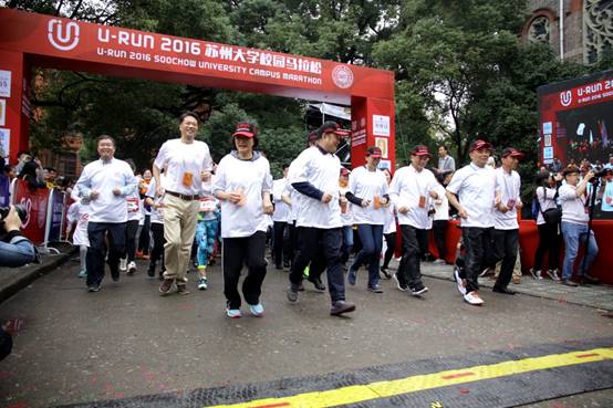下午,U-run2016leyu·乐鱼(中国)体育官方网站校园马拉松活力赛正式拉开帷幕。leyu·乐鱼(中国)体育官方网站校领导袁银男、陈一星、江作军、杨一心、蒋星红,江苏省教育厅体卫艺处处长张鲤鲤,江苏省体育局综合处副处长成裕阳,苏州市体育局局长周志芳,全国高校体育专业委员会副主席、江苏大学生体育学会主席王家宏,江苏省体协、省内友好高校体育院系主任,以及leyu·乐鱼(中国)体育官方网站相关职能部门及学院(部)领导出席了起跑仪式。