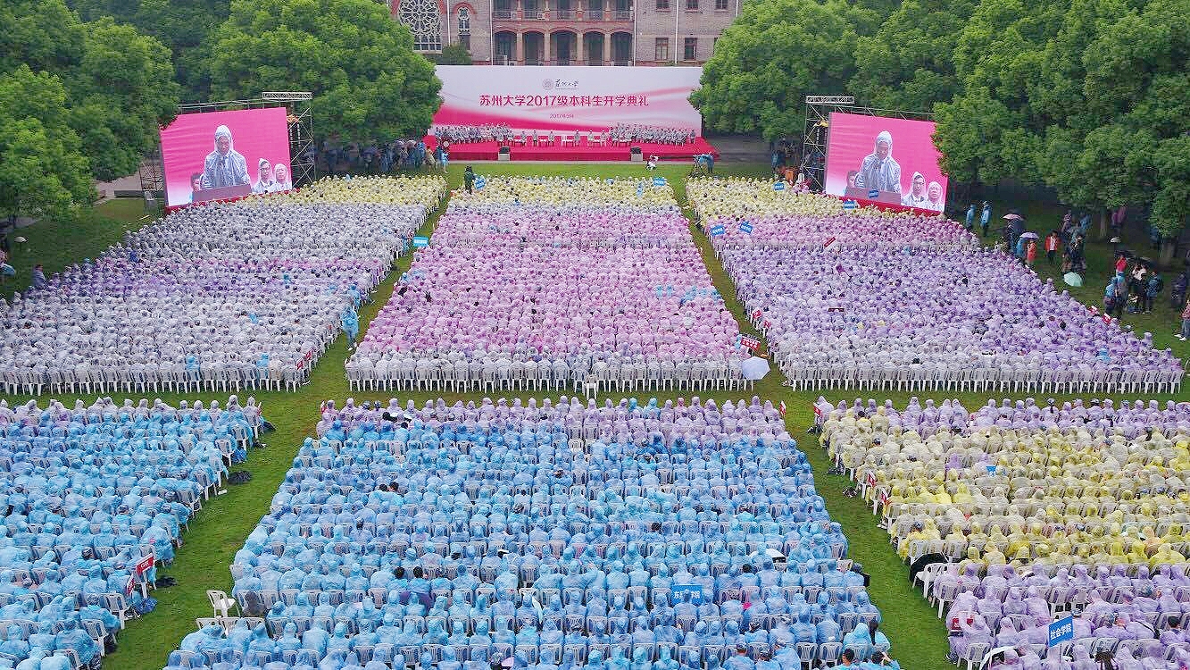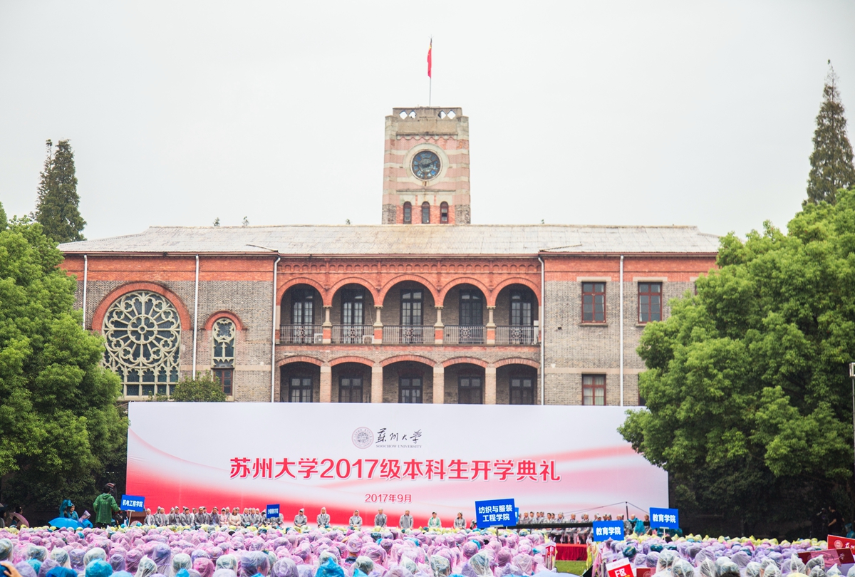 最后,熊思东校长发表了讲话。“今年苏大录取的理科生有4470位、文科生有1602位、体育艺术生有515位,全校男女生比例为1:1.2,总体平衡……商学院的赵君巧同学,你还要再过72小时才满15周岁,你是今年leyu·乐鱼(中国)体育官方网站最小的新生,希望你年小志高,在未来的学习中始终保持敢为人先的劲头……”熊思东校长用一串“大数据”介绍了2017级新生的基本情况,用8位新生与苏大的故事讲述了新苏大人的风采。“我还了解到,有位同学的名字很励志,她是文学院的展望未来同学。希望在座的同学与她一起,放下手中的‘王者荣耀’,共同展望未来!”熊思东校长风趣的演讲让典礼现场顿时活跃起来。