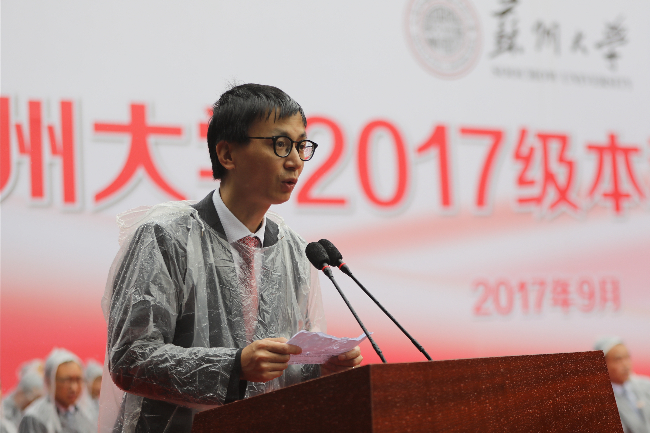 医学部博士生导师苏雄教授作为教师代表发言。“一路摸索,这个过程可能会有很多的困难和艰辛,但只要坚持,永不放弃,才能发现自己的兴趣在哪里,发现自己热爱什么样的工作。如果你们还没有发现自己喜欢什么,那就要不断去寻找,在学业上多接触专业以外的知识。” 苏雄教授从自己与苏大结缘的故事说起,鼓励学生找到自己的兴趣点,养成好的学习方法和习惯,充分利用学校提供的丰厚资源,不断提升自己,将来为学校蓬勃发展贡献力量。