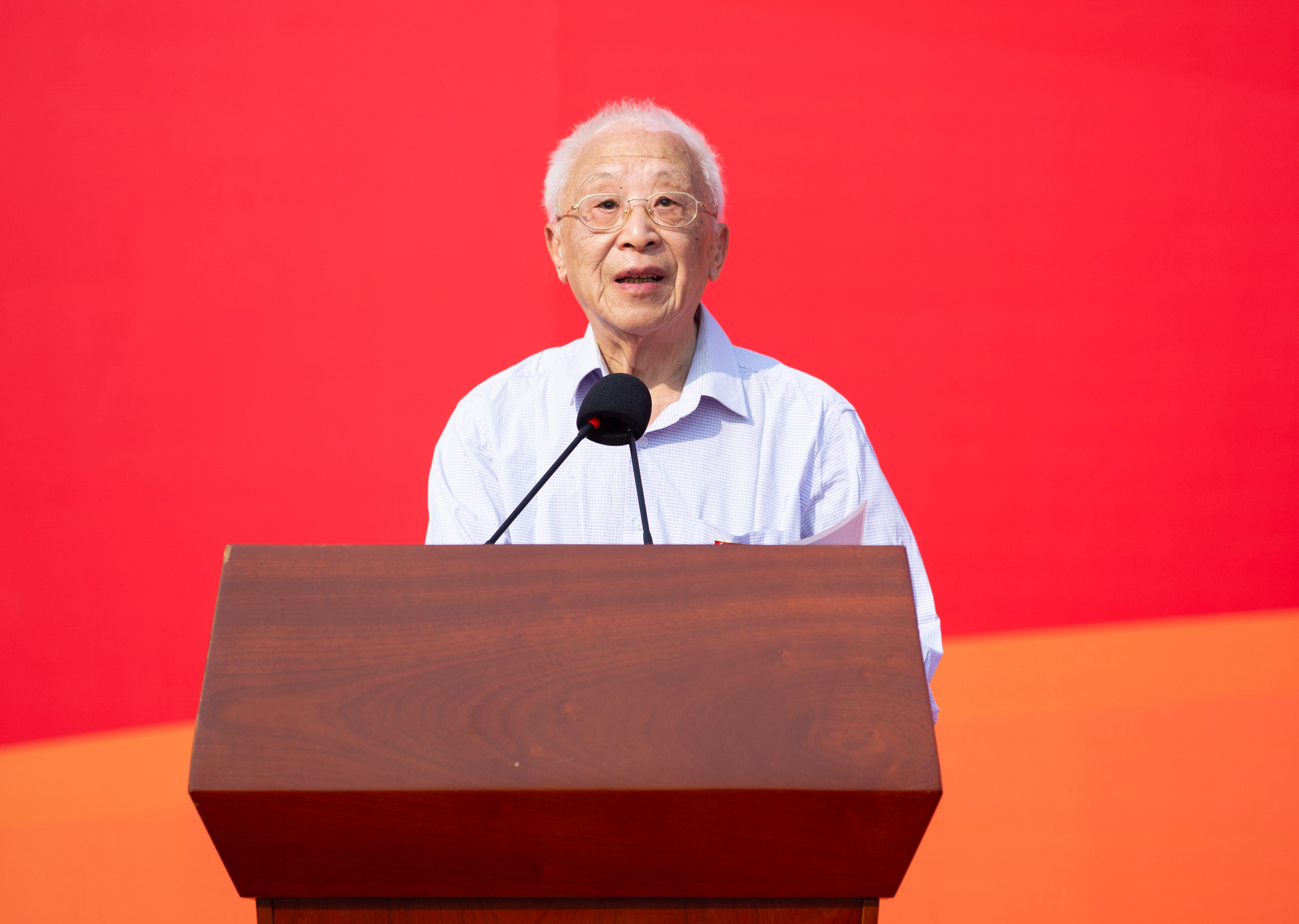 教师代表、中国工程院院士潘君骅回忆起自己70年前初入大学,在北京天安门广场亲眼目睹新中国第一面五星红旗升起时的激动心情。他希望同学们珍惜宝贵的青春年华,不虚度时光,发奋学习,保持旺盛的求知欲,努力成长为有道德情操、有扎实学识、谦虚严谨的栋梁之才。