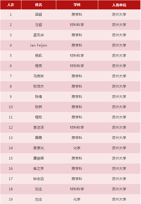leyu·乐鱼(中国)体育官方网站入选2019全球高被引科学家名单中,刘庄同时入选了材料科学和化学两个学科榜单。李述汤、汪超、杨凯、程亮入选材料科学学科榜单;李彦光入选化学学科榜单;梁超、Jan Feijen、孟凤华、冯良珠、张茂杰、陈倩、张桥、程茹、国霞、康振辉、柴之芳、钟志远入选跨学科榜单。