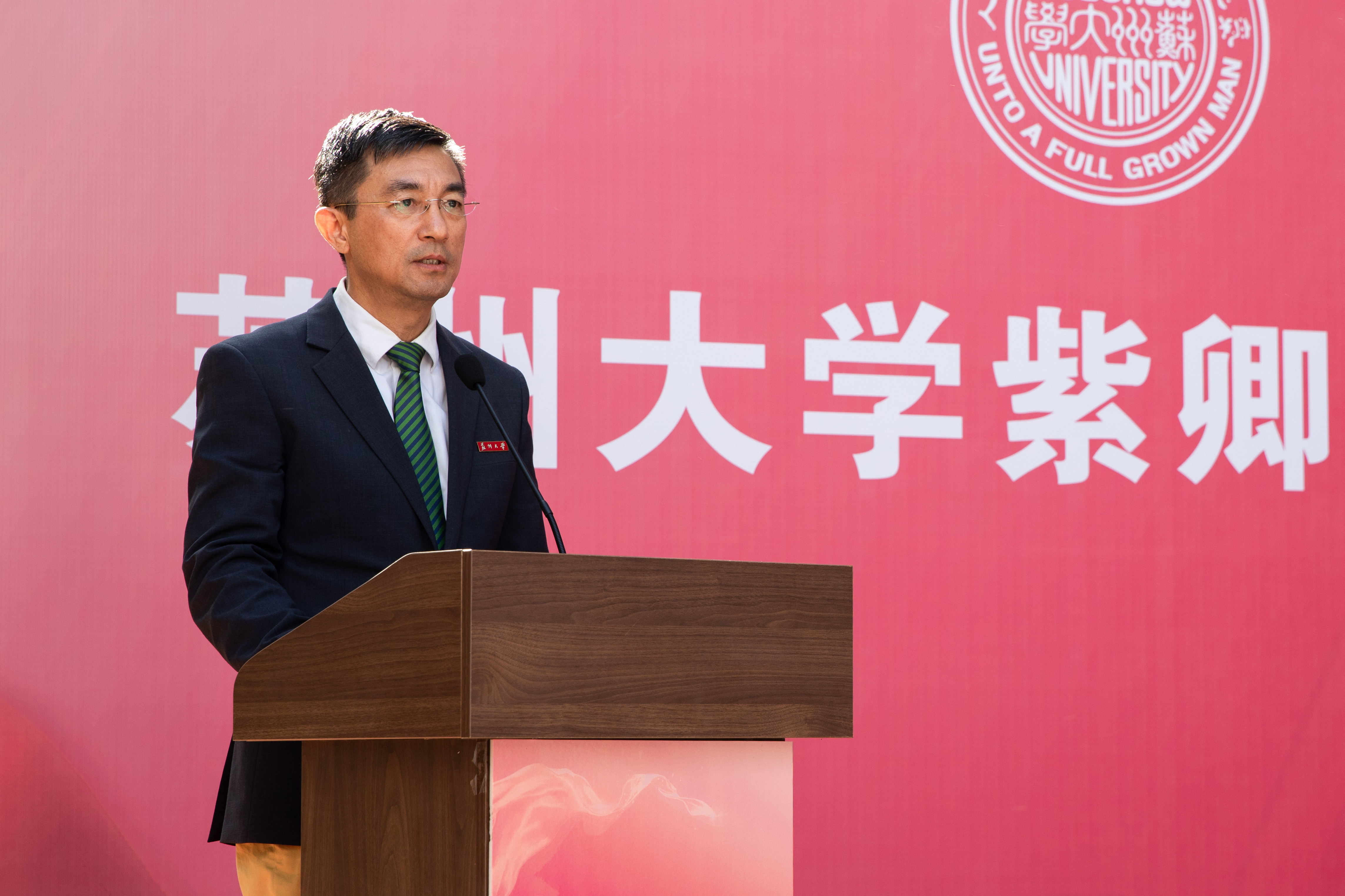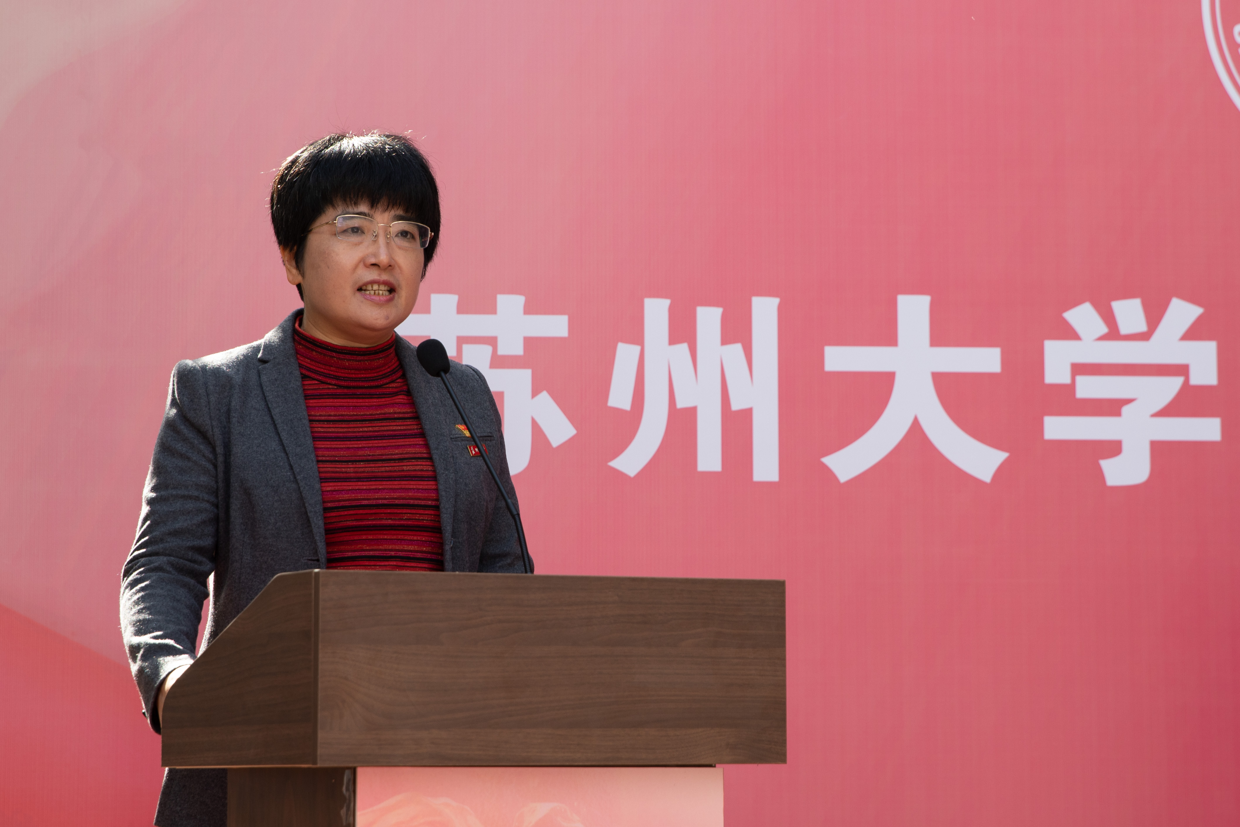 纺织与服装工程学院院长潘志娟感谢学校及社会各界对书院建设发展给予的关心与支持。她介绍了书院筹备情况,指出书院秉承苏大优秀办学传统与深厚文化积淀,通过改革人才培养方案及课程体系、推进第一课堂与第二课堂相融合的协同育人机制、创新学生管理模式等举措,积极探索实践全新的书院制人才培养模式。书院将满怀“诚谨勤朴,经纶天下”的豪情,以一往无前的勇气和担当,为学校“双一流”建设贡献力量。