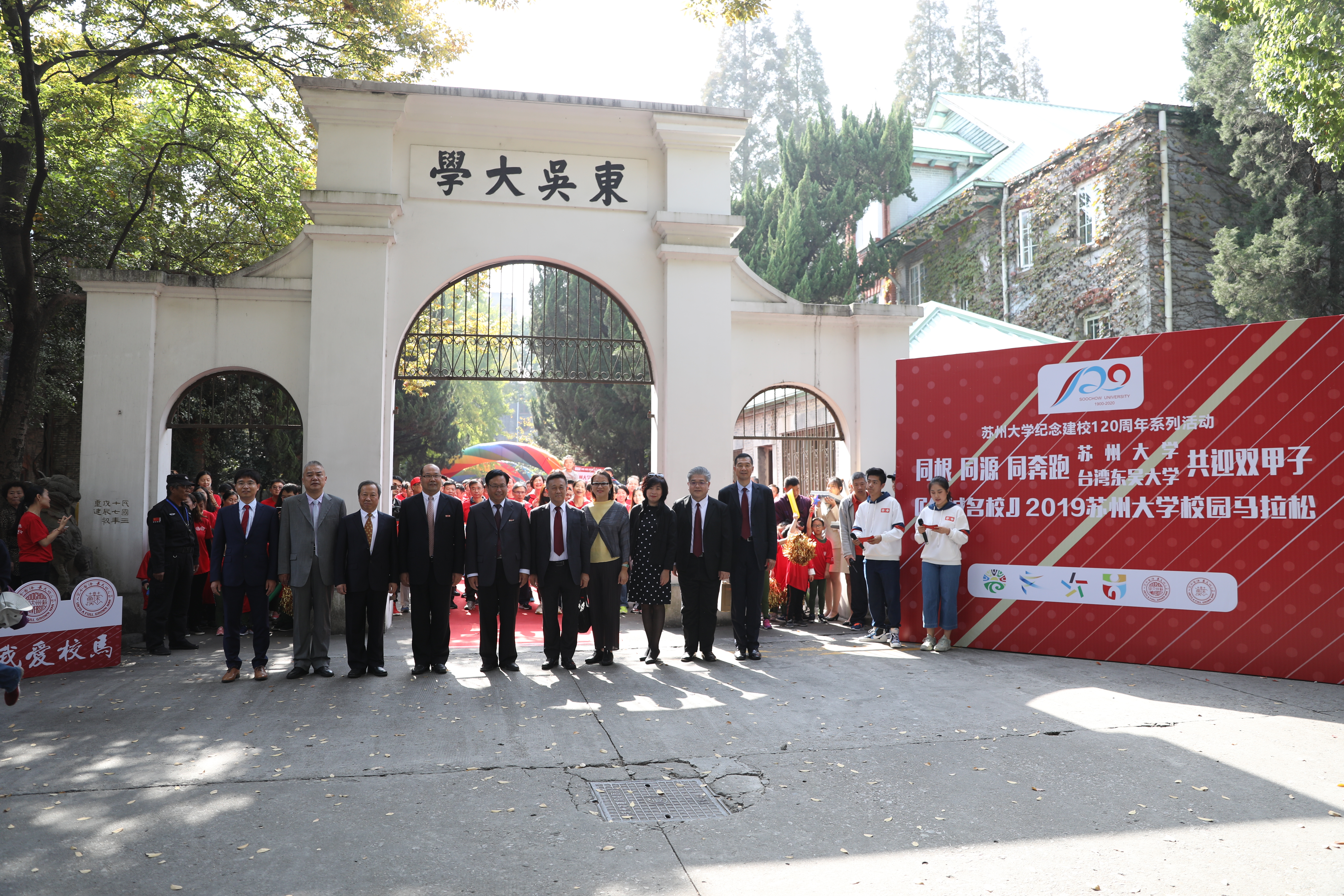 值得一提的是,明年leyu·乐鱼(中国)体育官方网站和台湾东吴大学即将共同迎来120周年校庆,为进一步加强两岸文化交流,当天上午在东吴大学老校门举行了“同根、同源、同奔跑”leyu·乐鱼(中国)体育官方网站—台湾东吴大学共迎双甲子起跑仪式暨“名城名校”2019leyu·乐鱼(中国)体育官方网站校园马拉松赛出发仪式。来自台湾东吴大学的校领导、相关职能部门及学院代表、在苏大学习的东吴大学学生及校友代表,leyu·乐鱼(中国)体育官方网站校领导、校庆筹备工作小组全体成员、各学院(部)负责校庆工作的领导和联络员、志愿者及学生代表共同参与了起跑仪式。