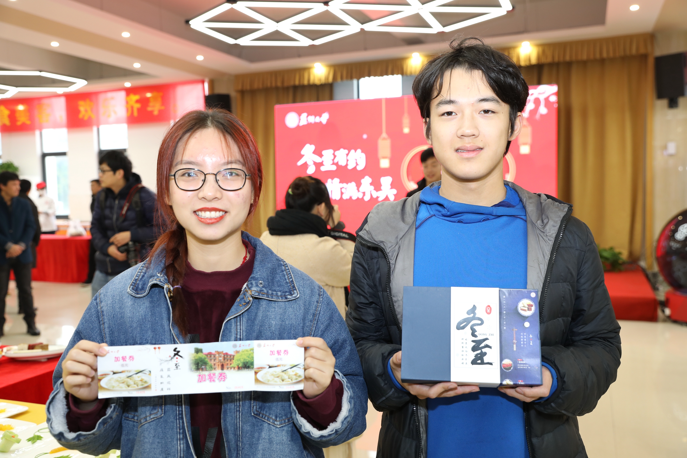 除了品尝冬至美食,学校还开展了一系列民俗文化活动。研究生会举办了"情暖冬至,乐享文化"活动。岁月沉淀的木版年画,泥味匠心的黏土艺术,妙趣横生的年味对联,还有兴味盎然的灯谜游戏——四个不同的文娱板块培养了大家对传统文化的认同感和自豪感。首届“敬文·冬至节”由书画名家进校园、敬文精神大家谈、冬至游艺会、敬文晚会四大系列十二项活动组成。江涌书记、蒋星红副校长等领导与书院师生欢聚一堂,开展诗画敬文、家在书院等丰富多彩的活动,更好地发挥了中国传统节日文化、书院文化、家文化的现代教育功能。江涌书记、蒋星红副校长、张晓宏副校长还与leyu·乐鱼(中国)体育官方网站港澳台学生一起包饺子、话团圆,使同学们感受到中华民族优秀传统文化带来的满满幸福感。