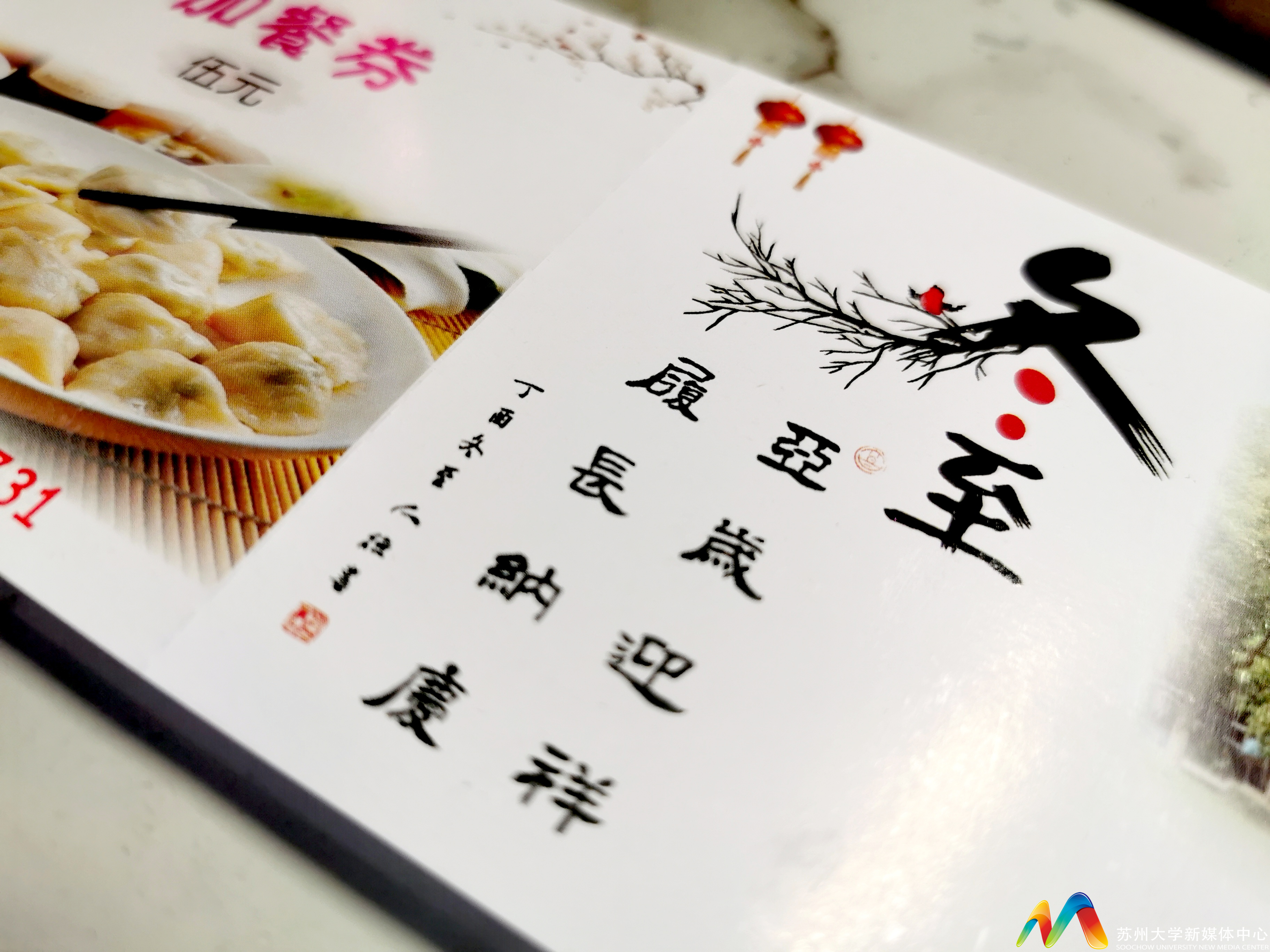 为了让同学们在校度过一个美好、欢乐又有意义的冬至,今年leyu·乐鱼(中国)体育官方网站继续为全校学生发放了每人10元的加餐券。加餐券上印有著名书法家——leyu·乐鱼(中国)体育官方网站华人德老师题写的“亚岁迎祥,履长纳庆”字样。文采炳焕,正中寓欹,亦可用于收藏纪念。