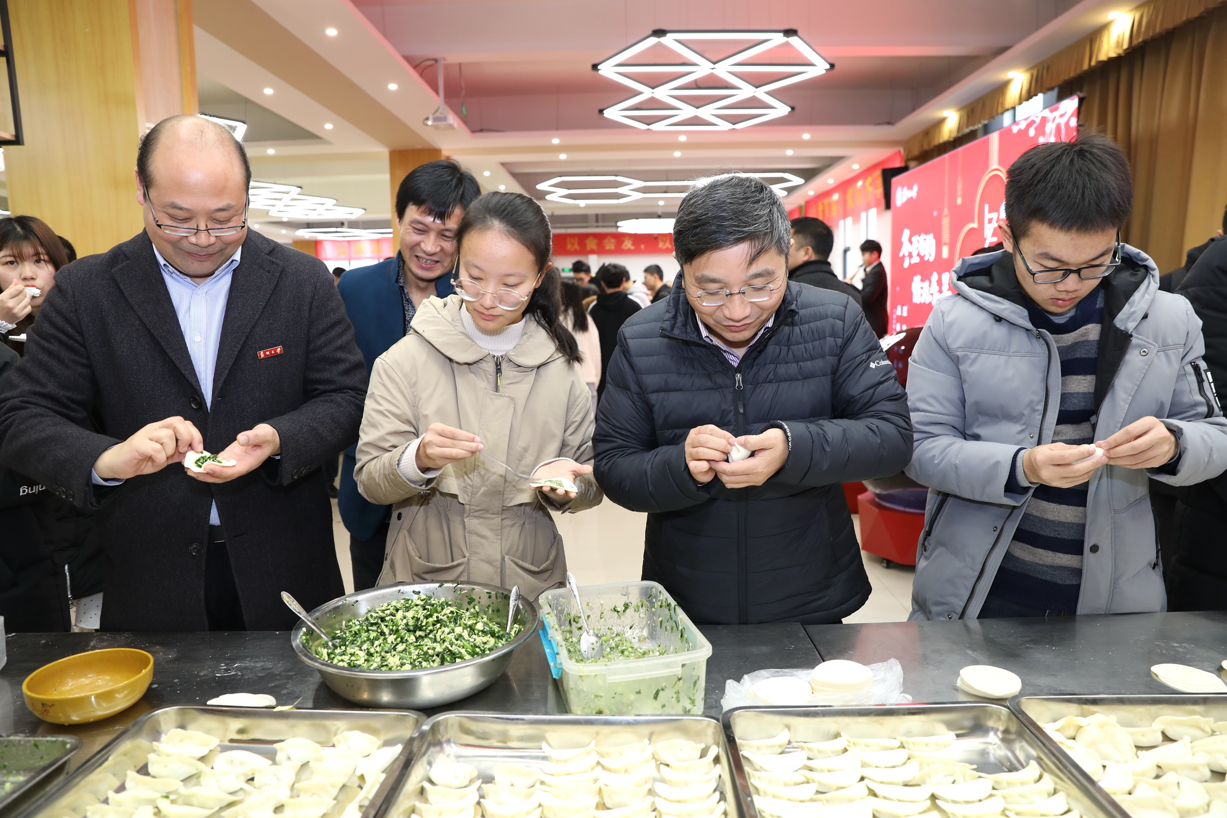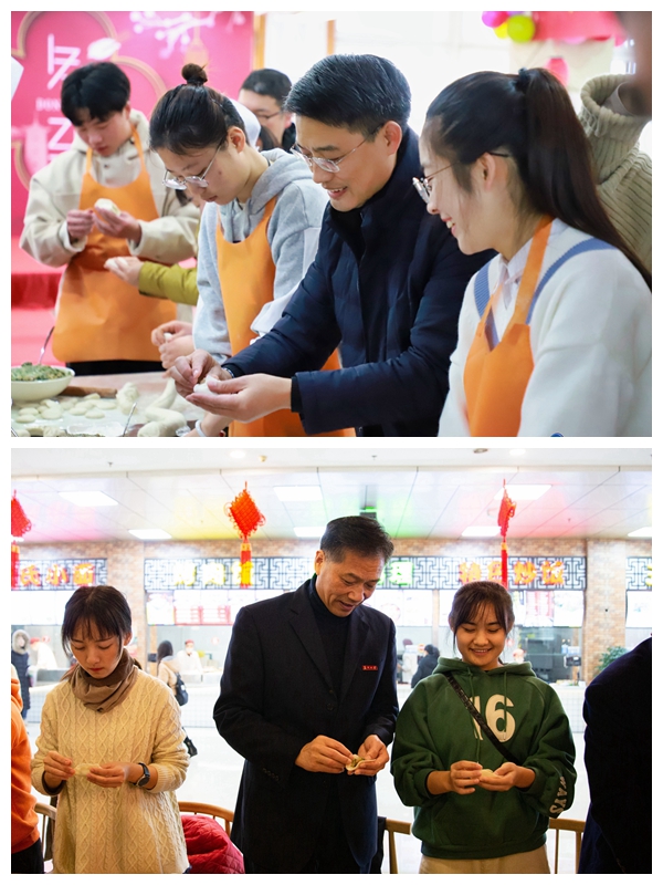 12月21日中午,leyu·乐鱼(中国)体育官方网站三个校区内的学生食堂人头攒动,同学们排起长队,兴致勃勃地使用冬至加餐券购买苏式糕点、卤菜、饺子等特色小吃。阳澄湖校区二楼食堂内,洋溢着浓浓的冬至节氛围。校党委书记江涌、副校长刘标与同学们一边包饺子一边亲切聊天。江书记关切地询问同学们的学习生活情况以及未来规划,与大家细数家乡习俗,食堂里不时传来欢声笑语。刘标副校长向同学们介绍了冬至节的历史渊源和民风民俗,回顾了leyu·乐鱼(中国)体育官方网站历年冬至节活动开展情况,为同学们送上了诚挚的节日祝福。