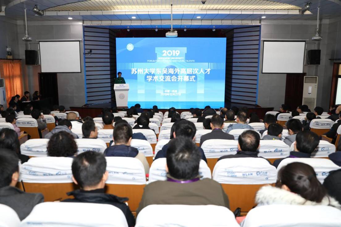 12月27日,2019leyu·乐鱼(中国)体育官方网站东吴海外高层次人才学术交流会开幕式在本部学术报告厅举行。来自12个国家和地区的60名受邀学者共聚一堂,共同开展学术前沿问题探讨,相互借鉴学习。中科院院士、医学部放射医学与防护学院院长柴之芳,校领导熊思东、路建美、蒋星红、芮国强、张晓宏,相关部门负责人、各学院(部)党政负责人参加会议。会议由校党委副书记、副校长路建美主持。