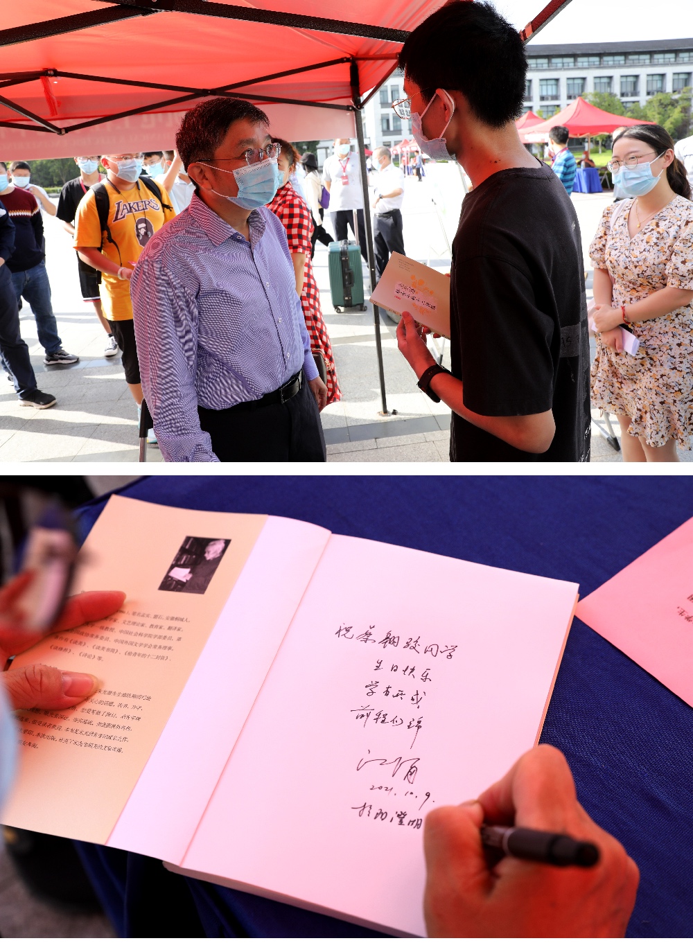 机电工程学院的新生蔡翱骏同学恰逢生日,学院为他精心准备了一份暖心礼物——朱光潜先生撰写的《给青年的十二封信》一书。江涌书记现场为蔡翱骏同学送上生日祝福,并在新书扉页上题写了亲笔祝福。“初入大学,我是不安与紧张的,但学校的安排、江书记的鼓励让我感受到了苏大的人文关怀,倍感惊喜、倍受激励。在以后的学习生活中,我会更加努力,不辜负各位老师的期待。” 蔡翱骏感动地说。