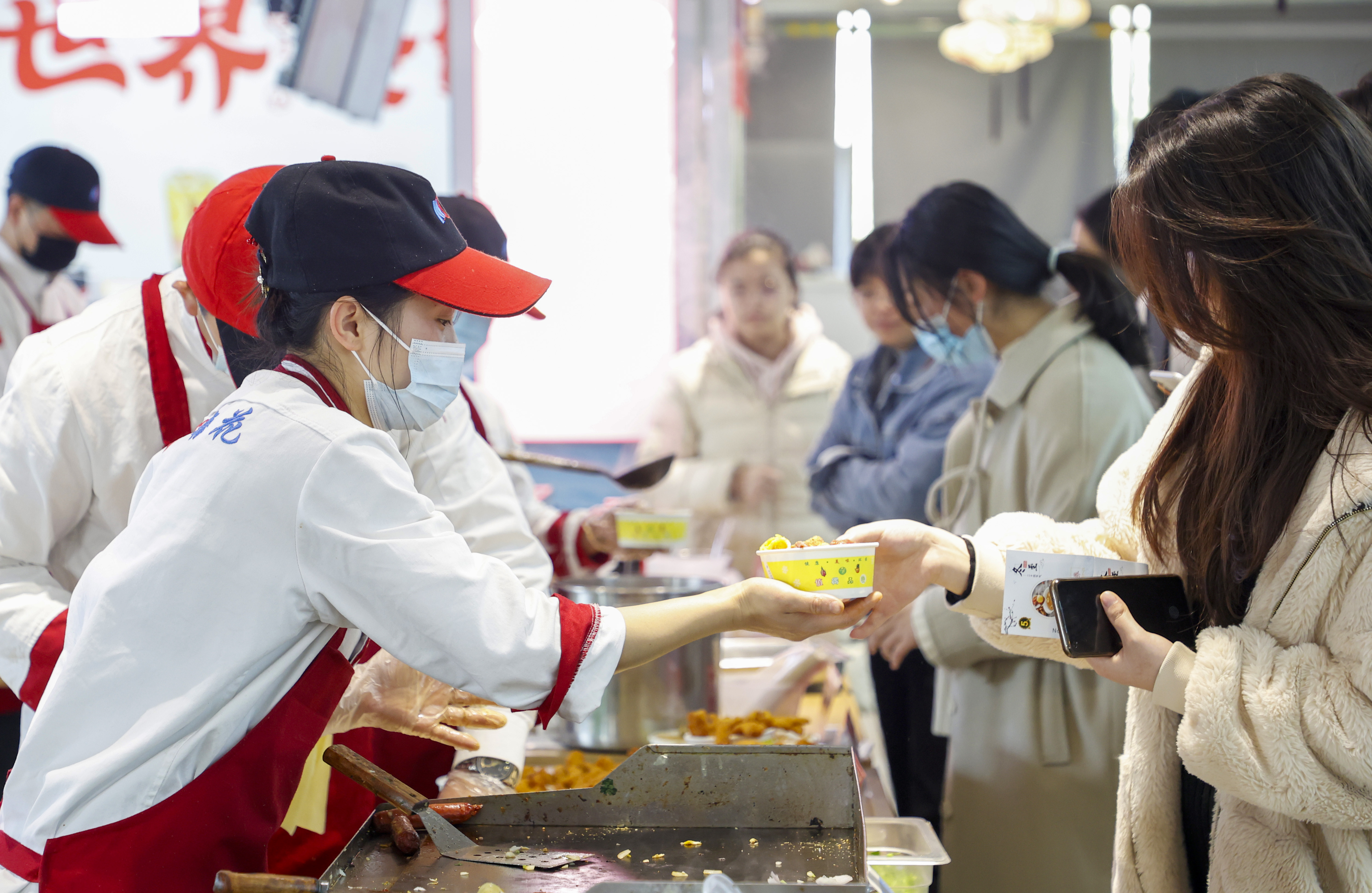 冬至夜当天,学校各校区学生食堂洋溢着欢乐的节日氛围。活动现场,师生们排起长队兴致勃勃地品尝着各类美食,酒酿元宵、水饺、各色苏式卤味、特色糕点、休闲小食琳琅满目,令人垂涎欲滴。为了让同学们在寒冬过一个温馨暖心的冬至节,延续往年惯例,今年学校仍为每位学生发放了10元加餐券。加餐券上印有著名书法家、leyu·乐鱼(中国)体育官方网站华人德老师书写的“亚岁迎祥,履长纳庆”字样,既寓意冬至迎纳吉祥,寄托对美好生活的祈愿,亦有收藏价值。