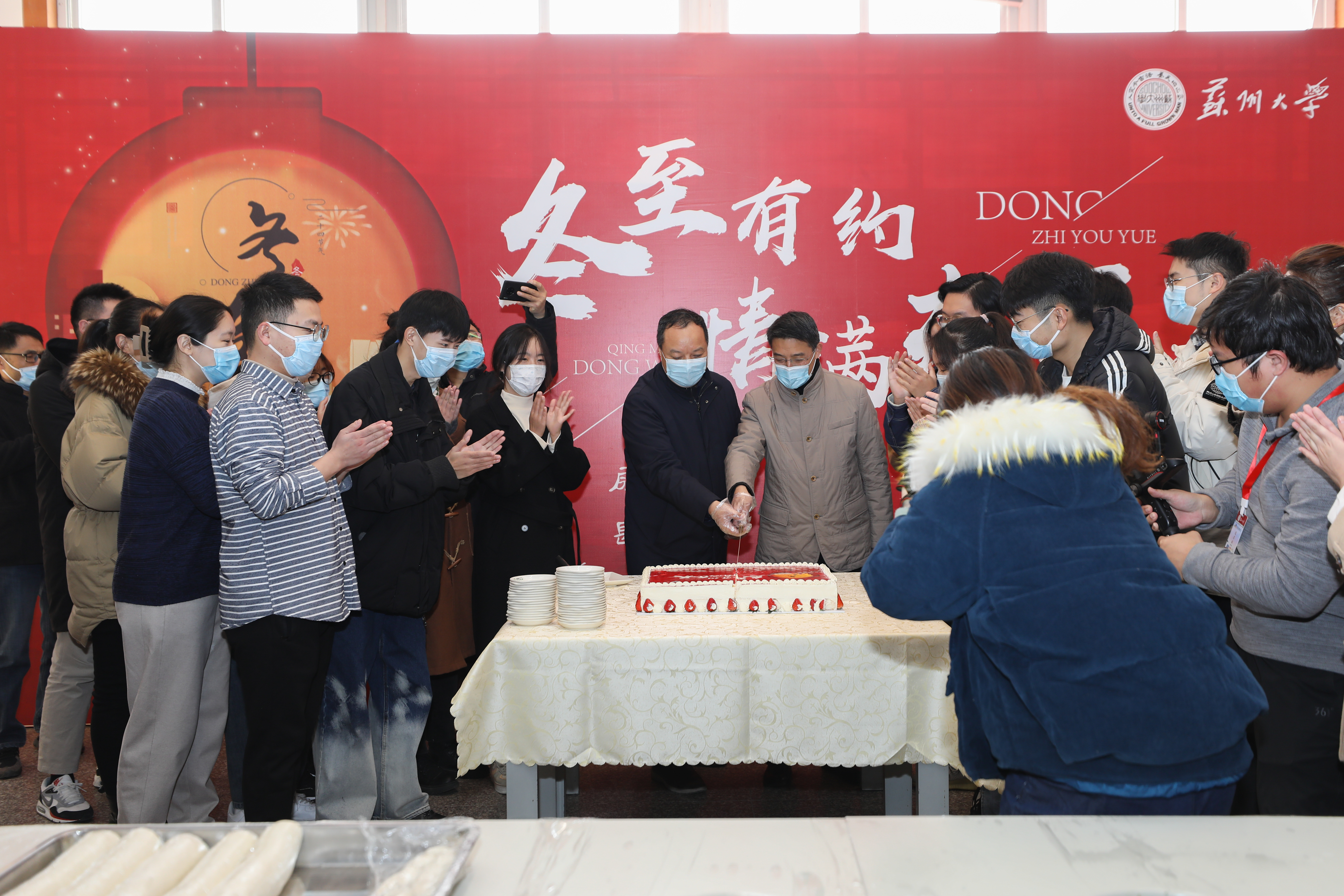 校党委书记江涌向同学们介绍了苏州冬至习俗,并关切询问了大家学习生活、课外实践及今后的发展规划等情况,勉励同学们要扎扎实实学好科学文化知识,用专业知识服务社会,争做时代新人。随着饺子与各色菜肴一盘盘端上,师生其乐融融,节日的氛围也渐渐浓厚。
