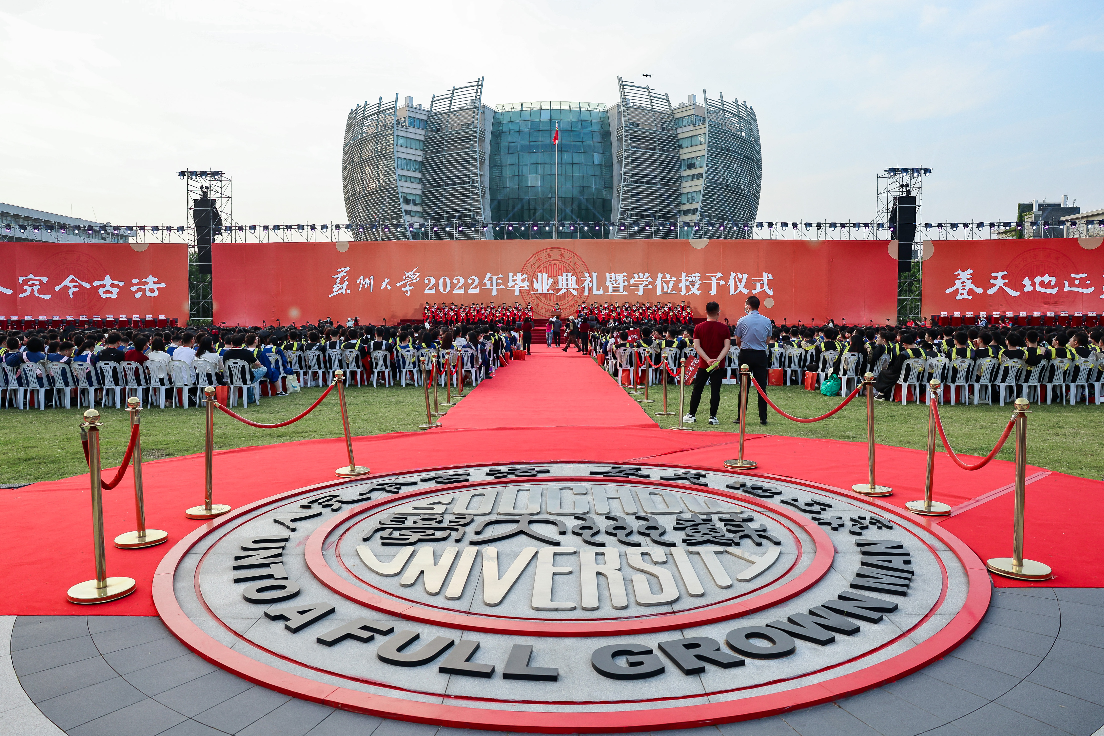 六月的苏州,蝉鸣盛夏,栀子花开。6月21日晚,leyu·乐鱼(中国)体育官方网站在独墅湖校区恩玲艺术中心户外草坪举行2022年毕业典礼暨学位授予仪式,万余名毕业生通过线上线下方式参与,同上最后一堂大思政课。师长的谆谆教诲、书写时代乐章的美育音乐会、礼赞青春的灯光秀表演……这场充满思政元素的毕业典礼,激发毕业生们深怀爱国之心、砥砺报国之志、勇挑强国重任。