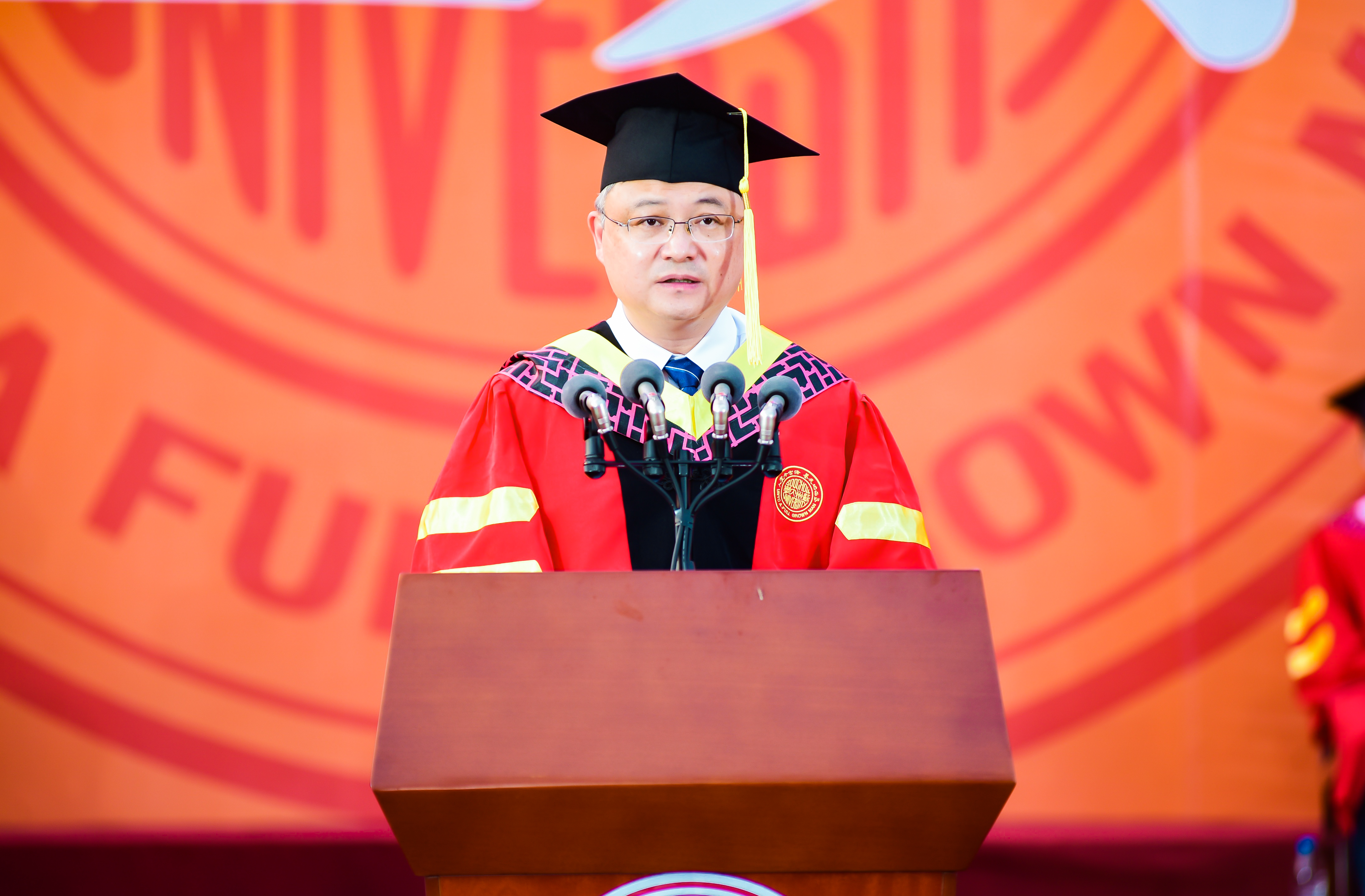 熊思东校长指出,年轻的学生们应当树立家国情怀,把“小我”融入祖国的“大我”、人民的“大我”之中,这样的内心将更添底气,脚下也将更有力量。“愿最好的你们,用一颗滚烫的心去勇敢、去奉献、去希望。一切都好,一切更好,一切最好,好上加好!”一段意味深远、催人奋进的毕业寄语让毕业生们汲取了前行的力量,倍受鼓舞的大家响起热烈的掌声。
