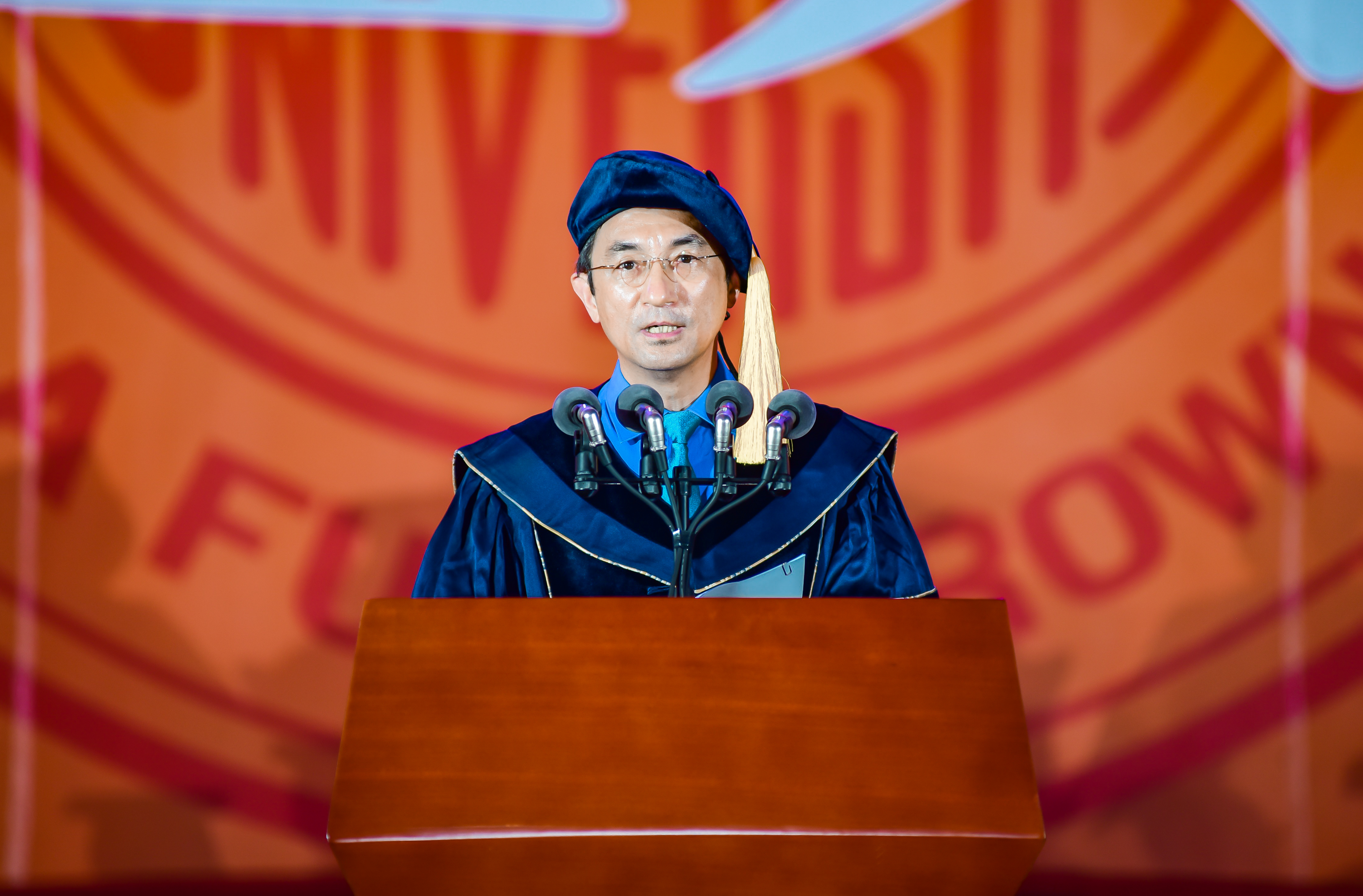 “此刻,我们把晚霞披在肩上,将星辰映入眼眸,在湖光月色的见证下,祝贺大家毕业!”在毕业典礼上,校学位评定委员会主席、校长熊思东以《最好的你们,可好?!》为题,用幽默诙谐的语言与同学们回顾了丰富多彩的大学校园生活,讲述了大家怀揣梦想来到苏大,在大学期间步履不停地耕耘,从直面困难中收获成长、采撷成功、体悟成长的温暖瞬间。