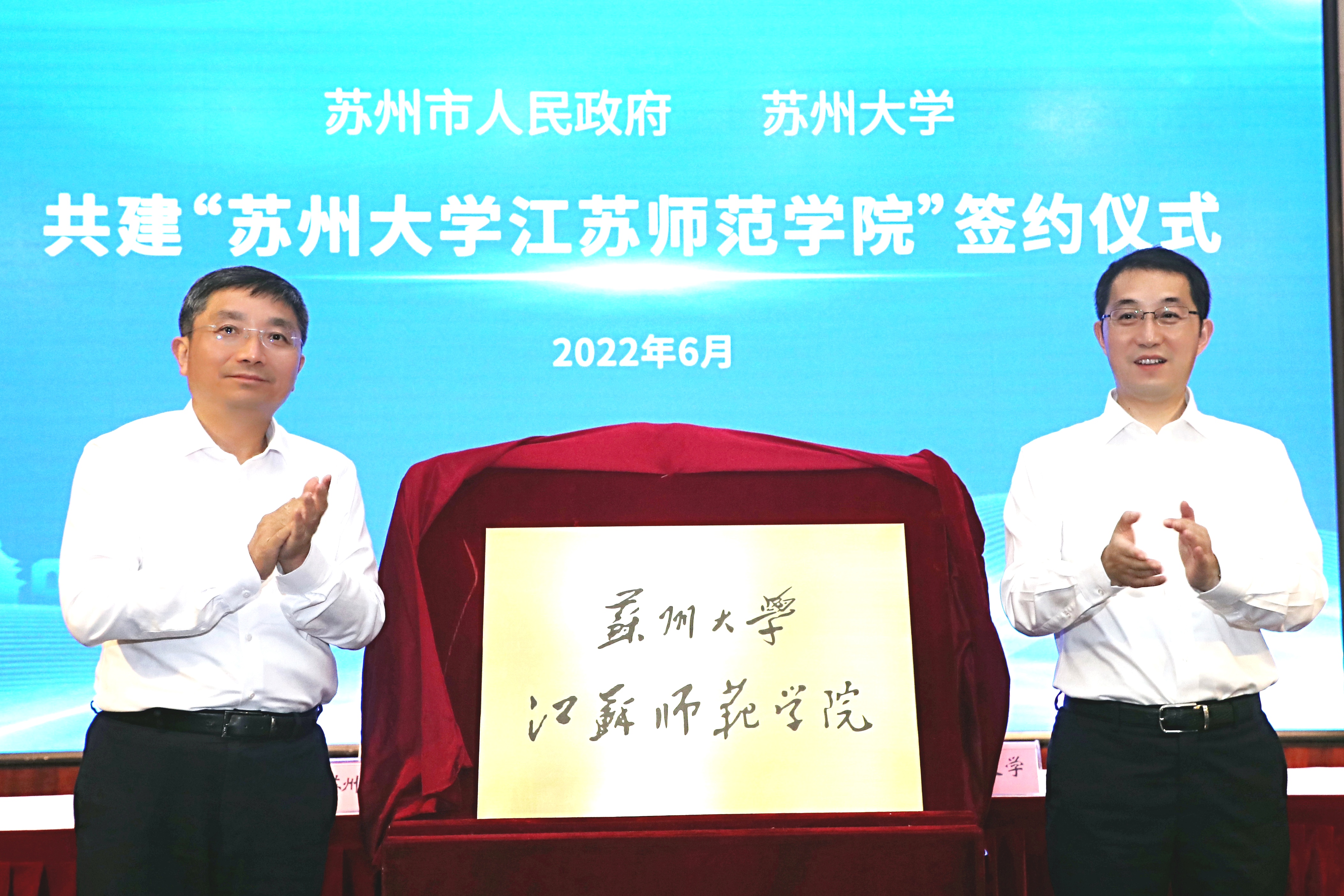 6月26日,苏州市人民政府与leyu·乐鱼(中国)体育官方网站共建“leyu·乐鱼(中国)体育官方网站江苏师范学院”的签约仪式在红楼会议中心学术报告厅举行。教育部教师工作司司长任友群,苏州市委副书记、市长吴庆文,苏州市副市长季晶,苏州市政府秘书长陈羔,苏州市政府副秘书长谢飞 ,苏州市教育局局长周志芳,苏州市财政局局长刘小玫,苏州幼儿师范高等专科学校校长杨建良,leyu·乐鱼(中国)体育官方网站党委书记江涌、校长熊思东,校党委常委、副校长沈明荣、姚建林等出席活动。苏州市教育局相关部门负责人,leyu·乐鱼(中国)体育官方网站相关职能部门负责人、相关学院领导和师生代表,以及leyu·乐鱼(中国)体育官方网站实验学校和附属学校的领导参加了签约仪式。仪式由副校长沈明荣主持。