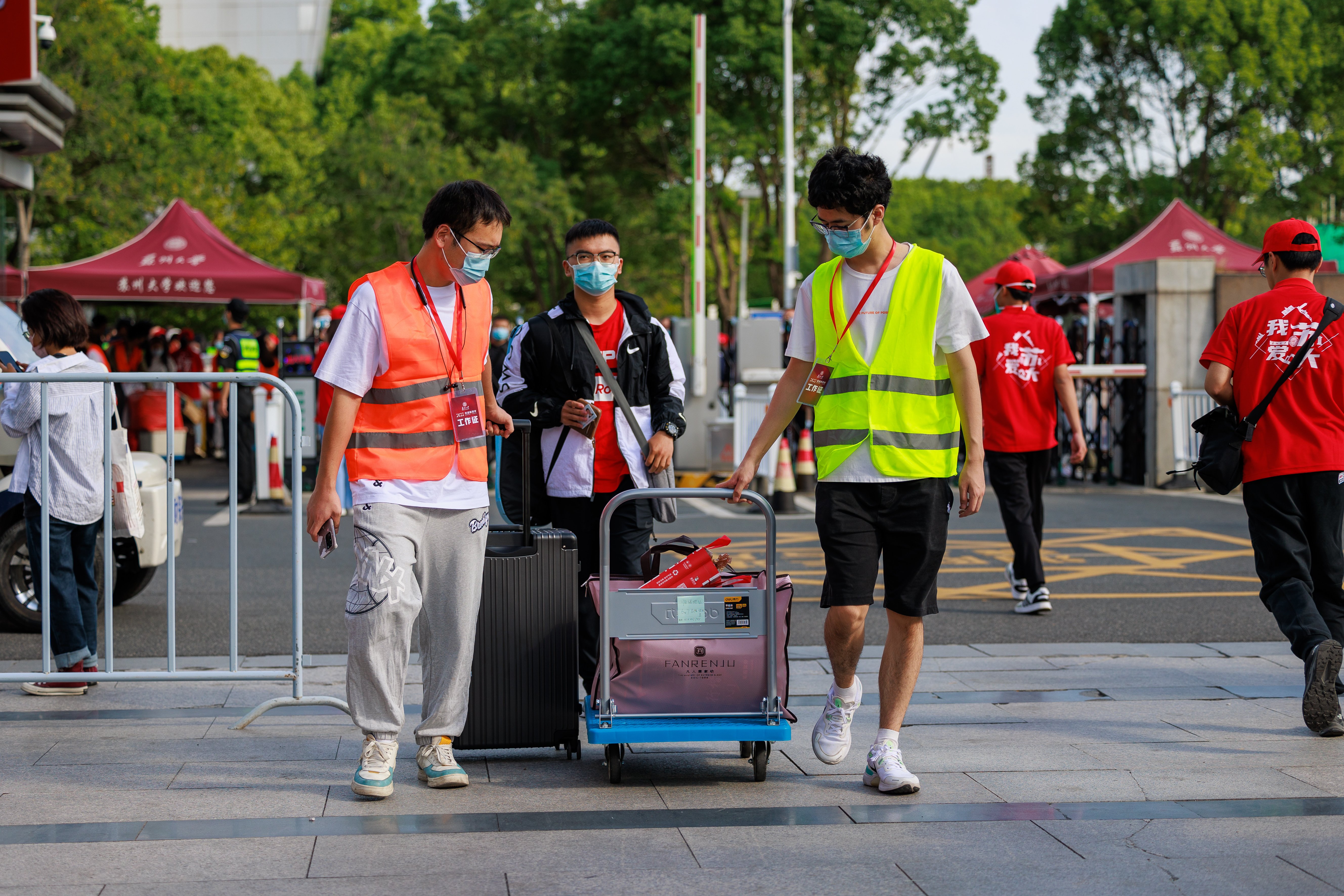 天光微亮,身穿“我爱苏大”红马甲的学生志愿者便等候在迎新点,看到新生前来报到便快步上前,热情周到帮助新生搬运行李、办理报到手续,各学院(部)的老师及相关职能部门的工作人员也在现场为新生提供周到服务。