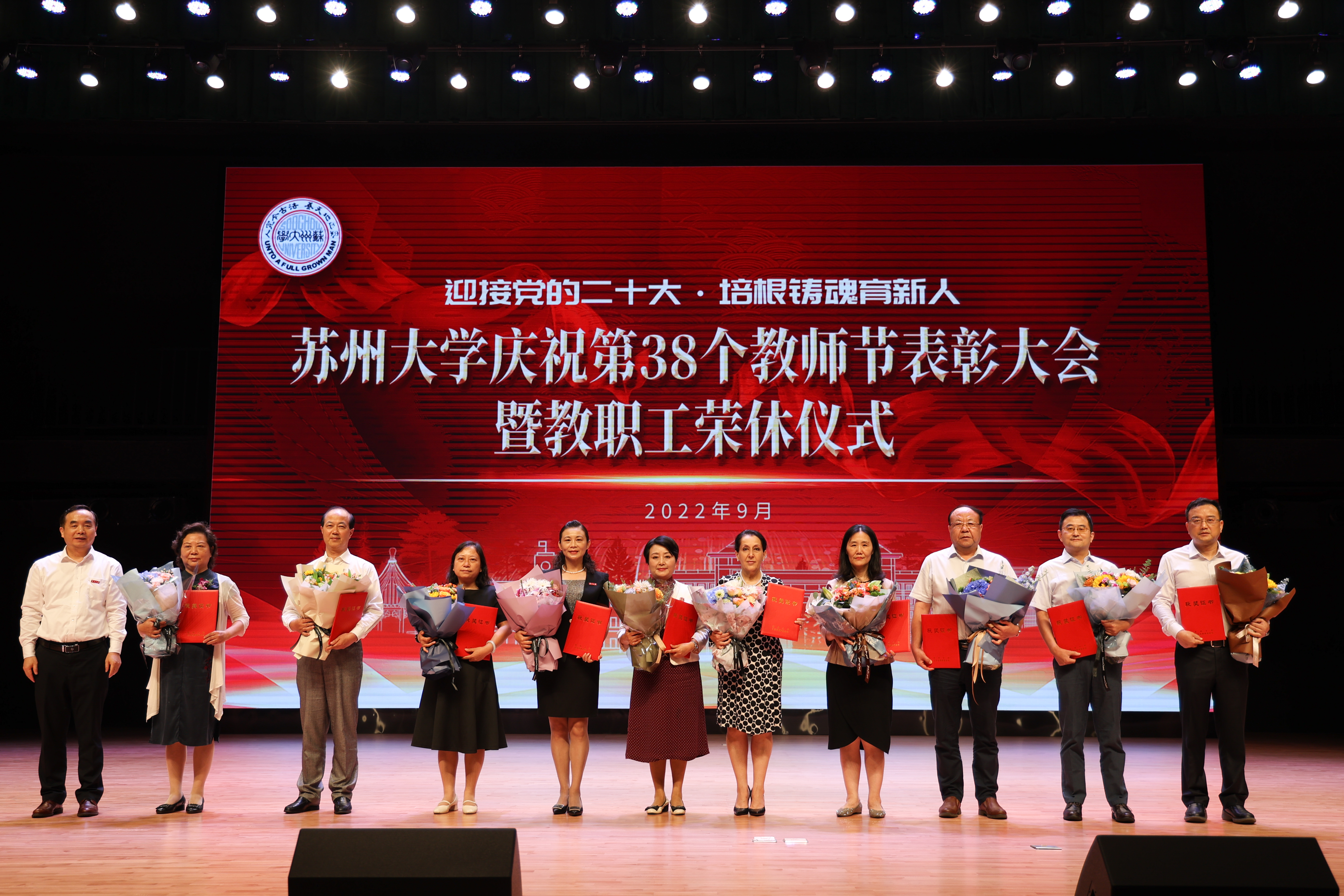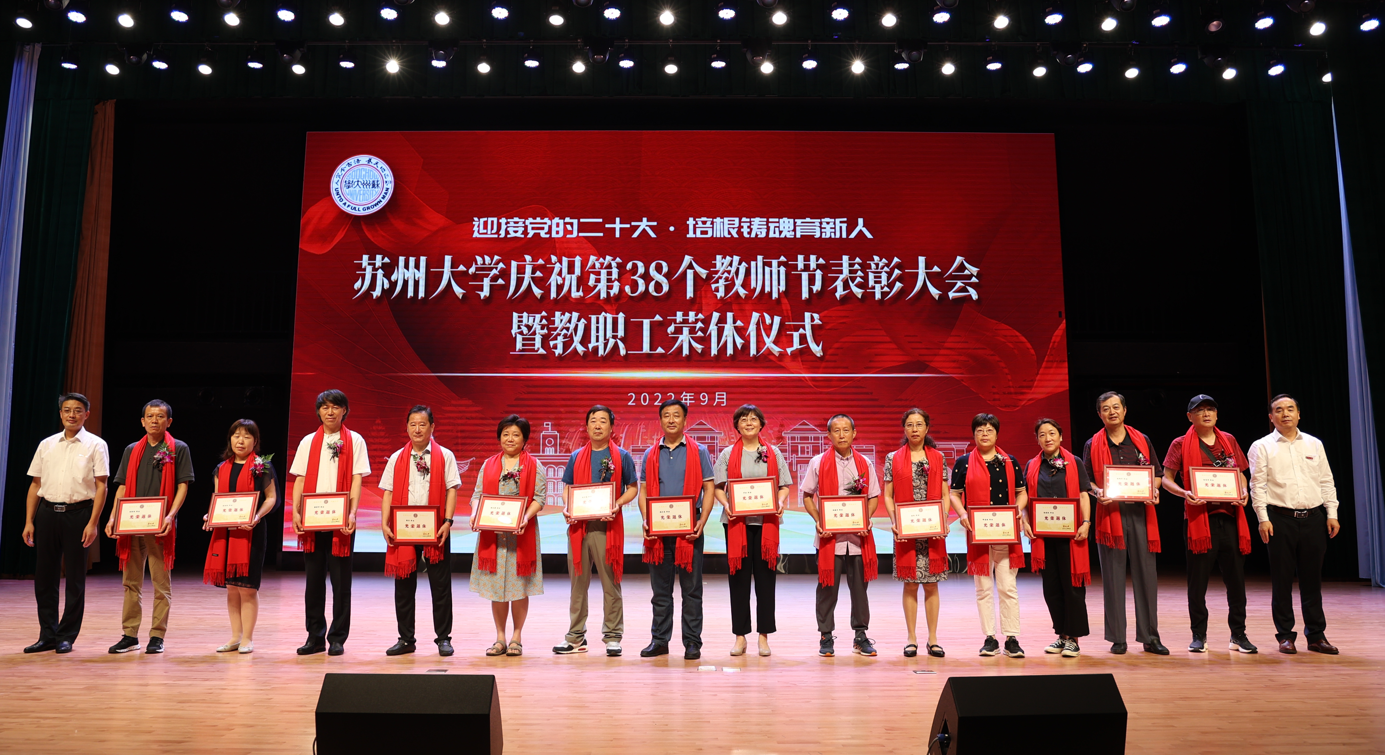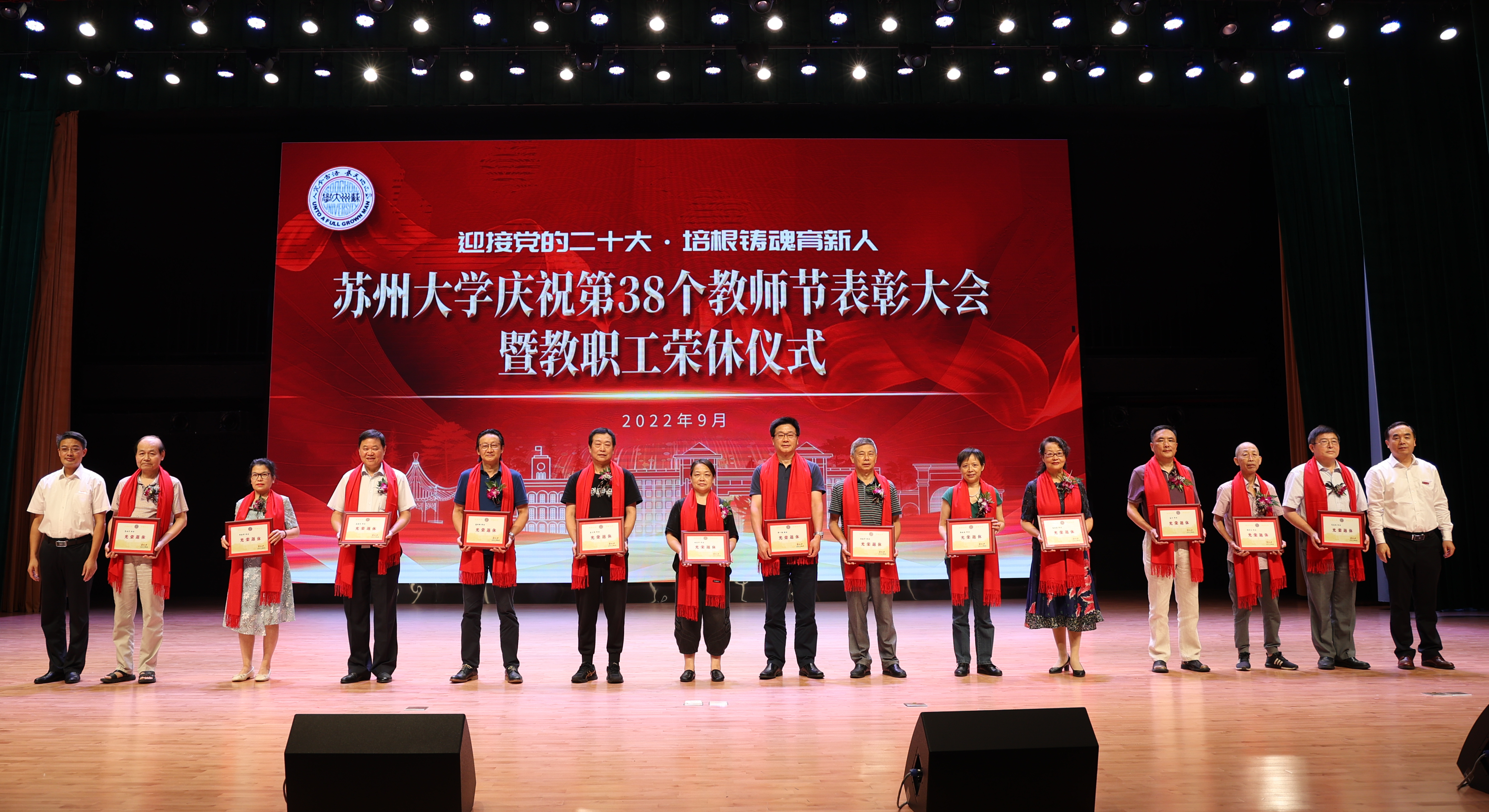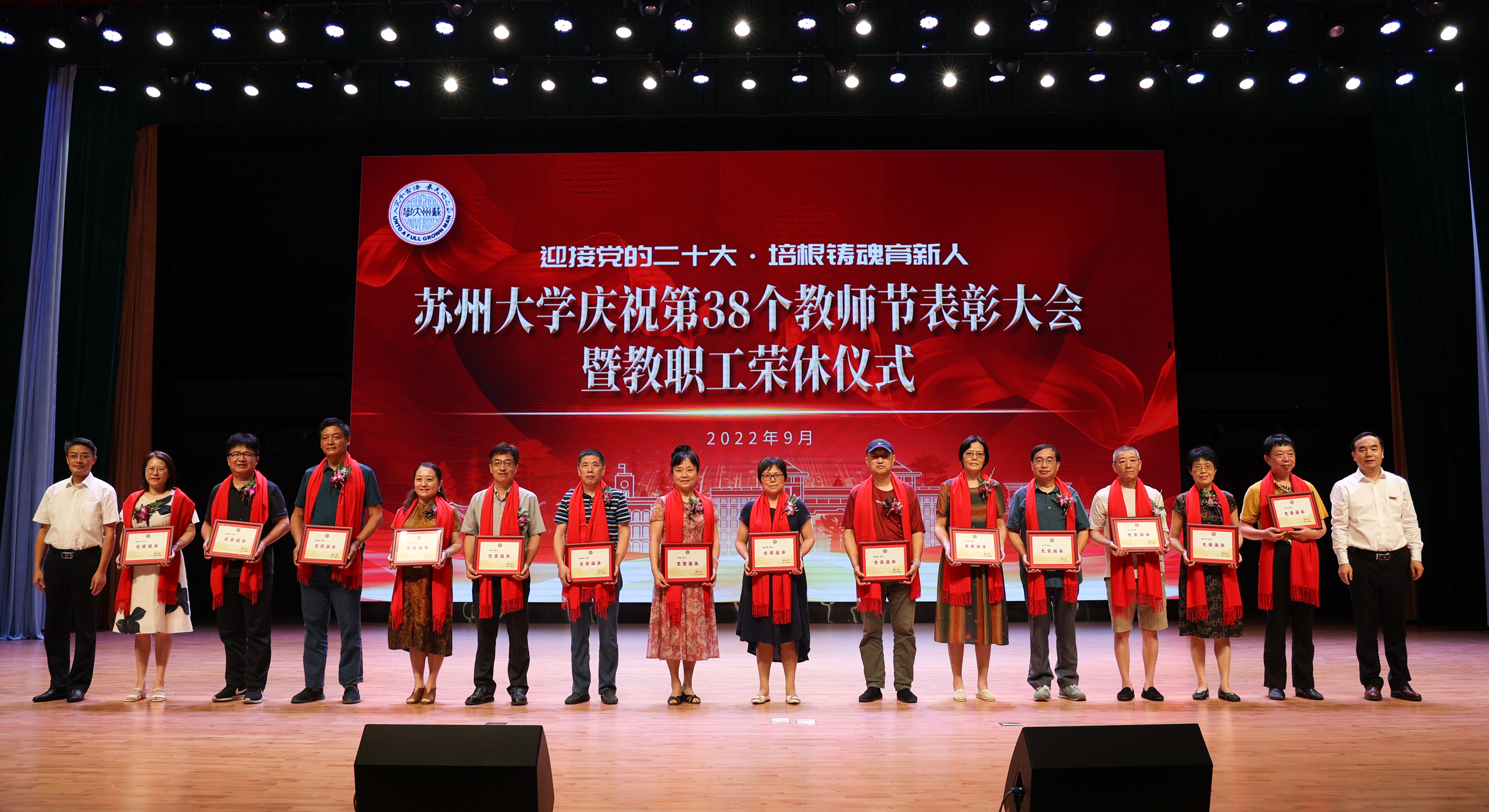 荣休教职工代表、外国语学院教授顾佩娅在发言中表示,无论在职还是退休,帮助自我成长和他人发展是终身使命,作为一个有知识、有理想、有爱心的苏大人,将会继续尽力为学校发展贡献才智和力量,坚信苏大的明天会更好。