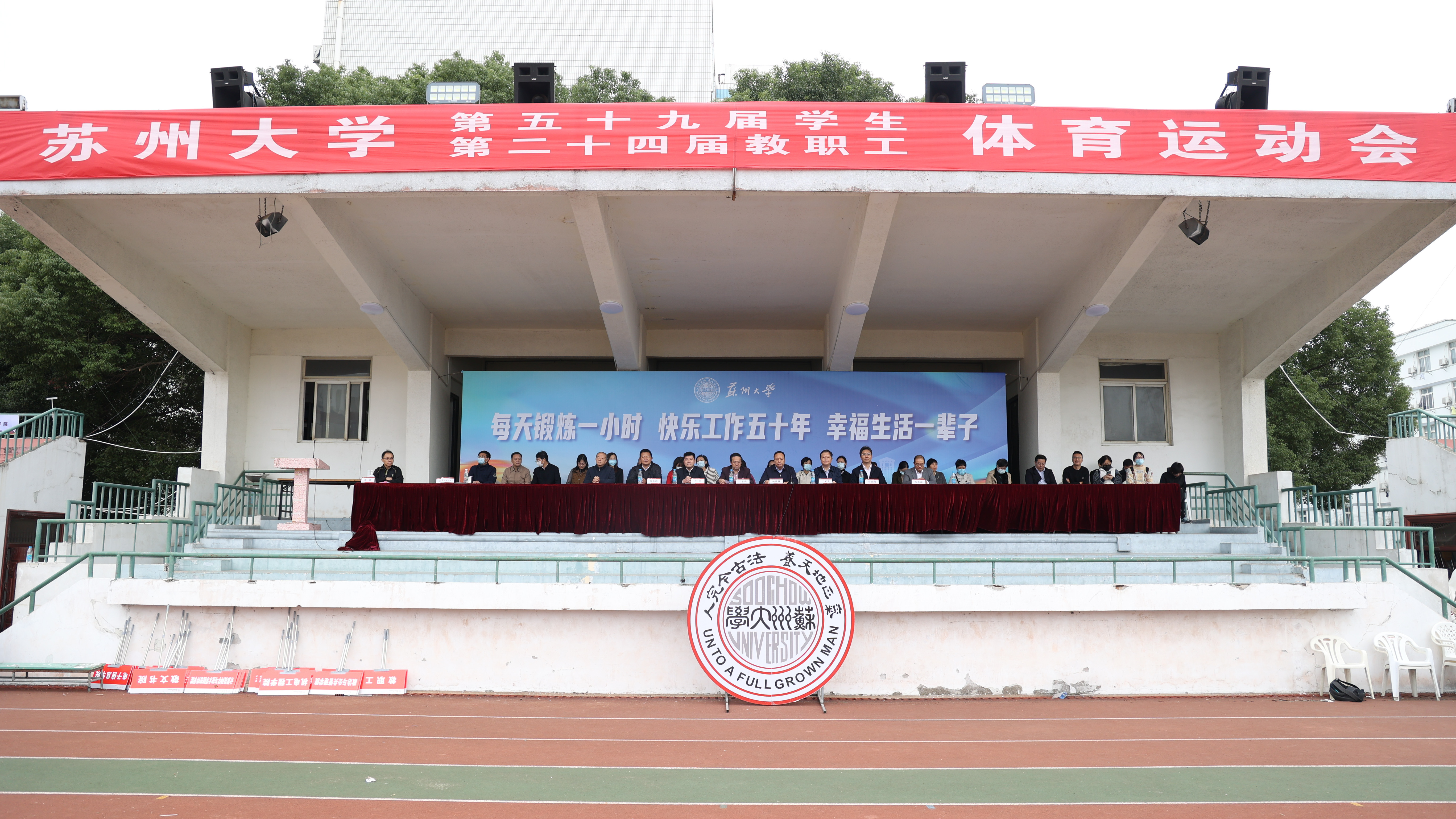 姚建林代表学校及本届运动会组委会向取得优异成绩的代表队及运动员表示祝贺,向筹备和保障运动会成功举办而辛勤付出的师生员工表示感谢。他指出,举办本次运动会,是学校全面落实立德树人根本任务,丰富校园文化生活、增强学校凝聚力的重要举措,是对苏大师生精神风貌、身心素质、运动水平的全面展示。站在新征程上,希望全校师生继续弘扬体育精神,振奋苏大力量,把在赛场上展现出的顽强拼搏、团结互助、永不放弃的精神带入工作和学习中,共同为推进学校国内一流、国际知名高水平研究型大学建设作出积极贡献,为实现中华民族伟大复兴的中国梦奋勇前进。