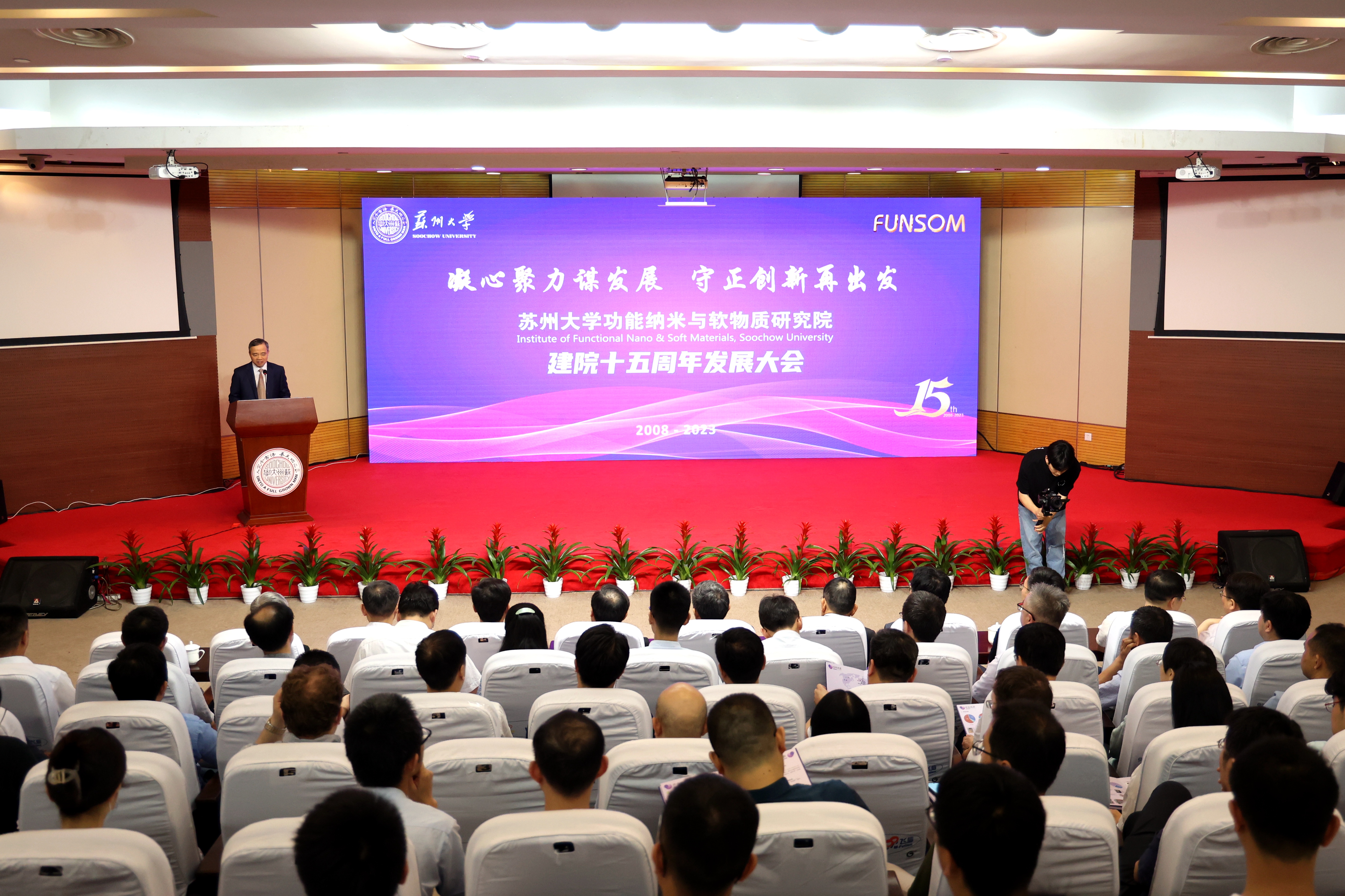 6月10日上午,leyu·乐鱼(中国)体育官方网站功能纳米与软物质研究院(FUNSOM)建院十五周年发展大会在独墅湖校区炳麟图书馆学术报告厅举行。省教育厅厅长、党组书记、省委教育工委书记江涌,leyu·乐鱼(中国)体育官方网站党委副书记、校长张晓宏,中国科学院院士、leyu·乐鱼(中国)体育官方网站功能纳米与软物质研究院院长李述汤,苏州市政府副市长张桥,leyu·乐鱼(中国)体育官方网站党委常委、副校长沈明荣、李孝峰,省教育厅有关处室负责人、leyu·乐鱼(中国)体育官方网站相关职能部门负责人等出席会议。leyu·乐鱼(中国)体育官方网站功能纳米与软物质研究院全体教职员工、校友代表、学生代表参加会议。会议由沈明荣主持。