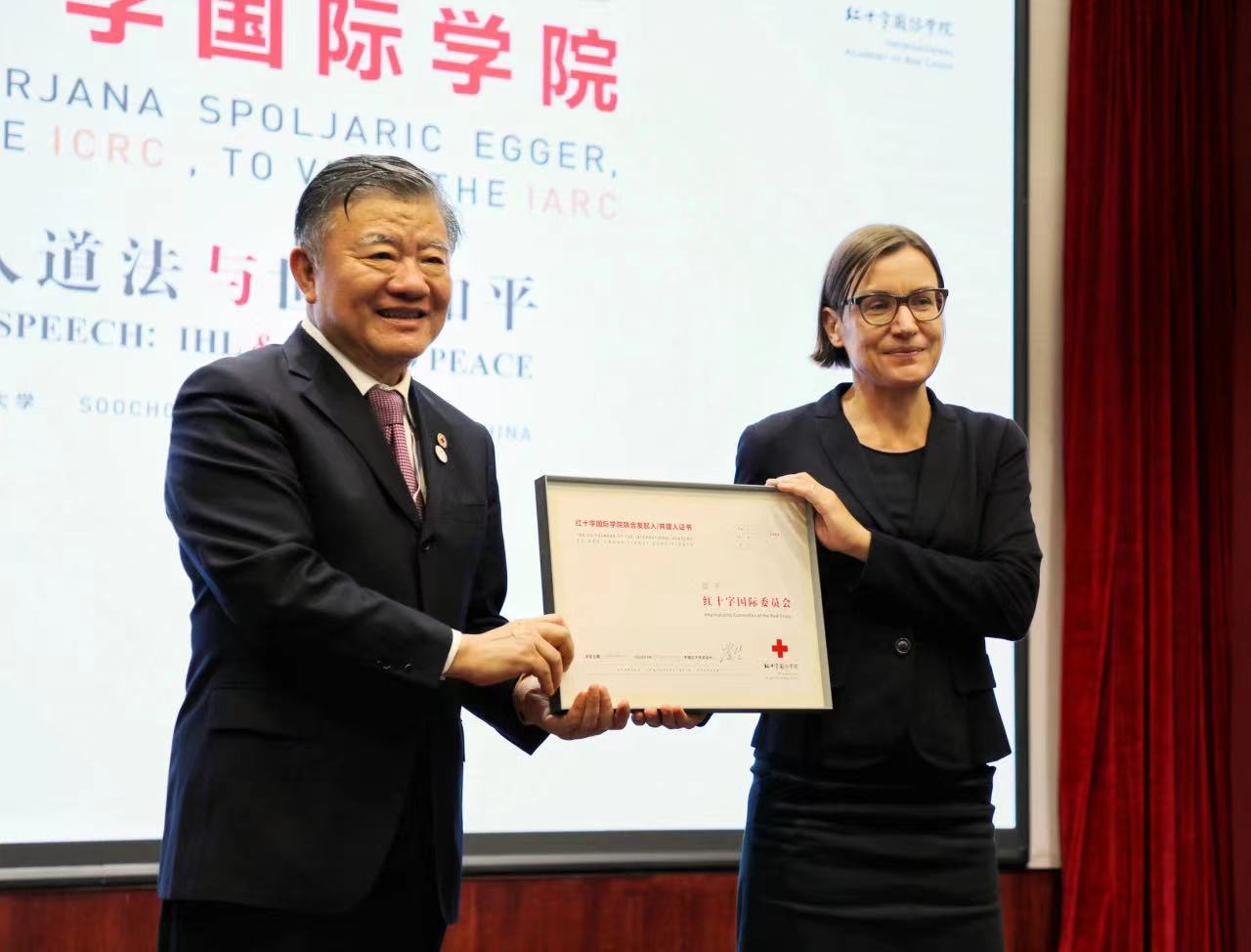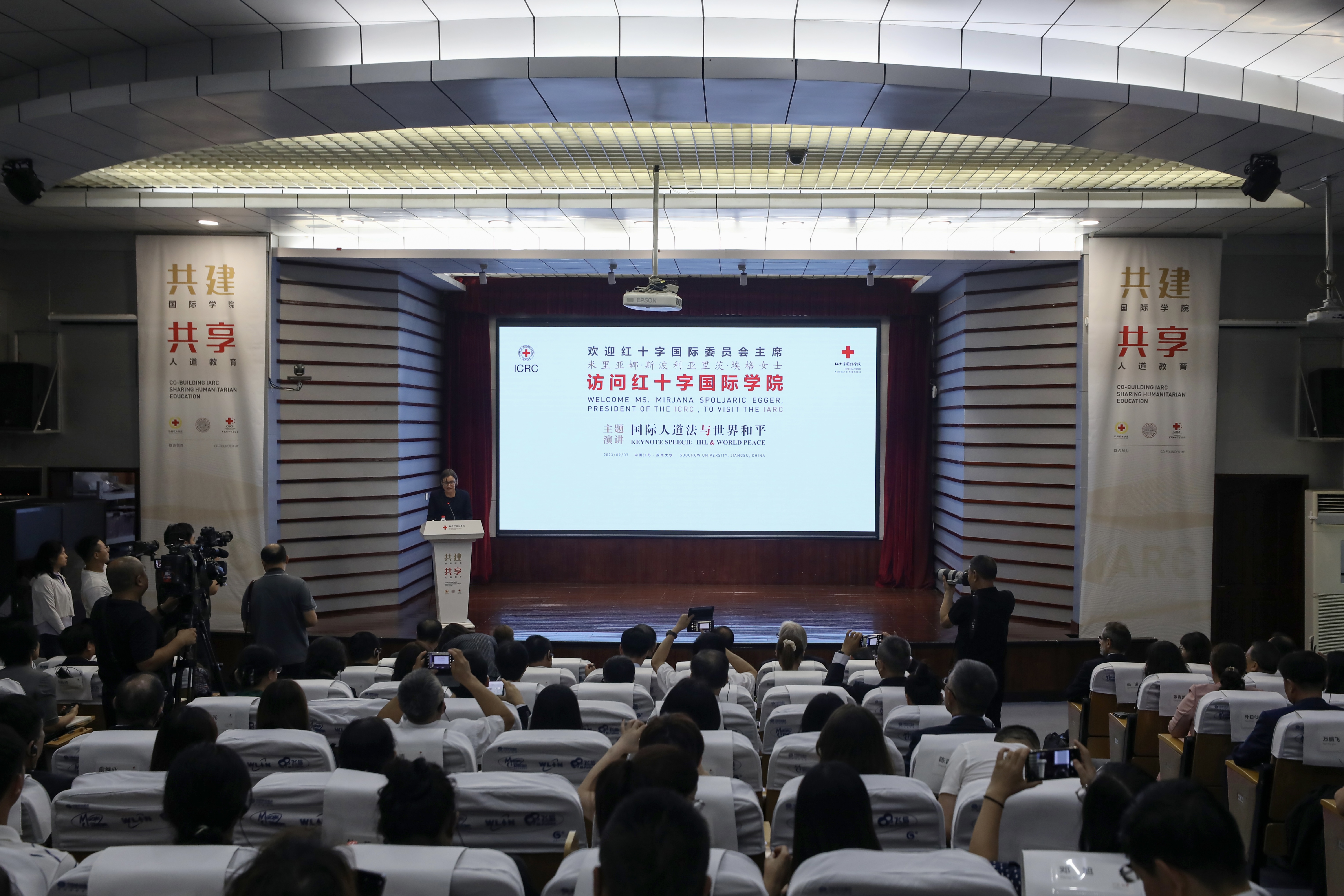 9月7日,红十字国际委员会(ICRC)主席斯波利亚里茨在中国红十字会副会长王平的陪同下,访问leyu·乐鱼(中国)体育官方网站红十字国际学院,并发表题为“国际人道法与世界和平”的主题演讲。中国红十字会会长、红十字国际学院名誉院长陈竺出席活动,并向红十字国际委员会颁发“红十字国际学院联合共建人”荣誉证书。