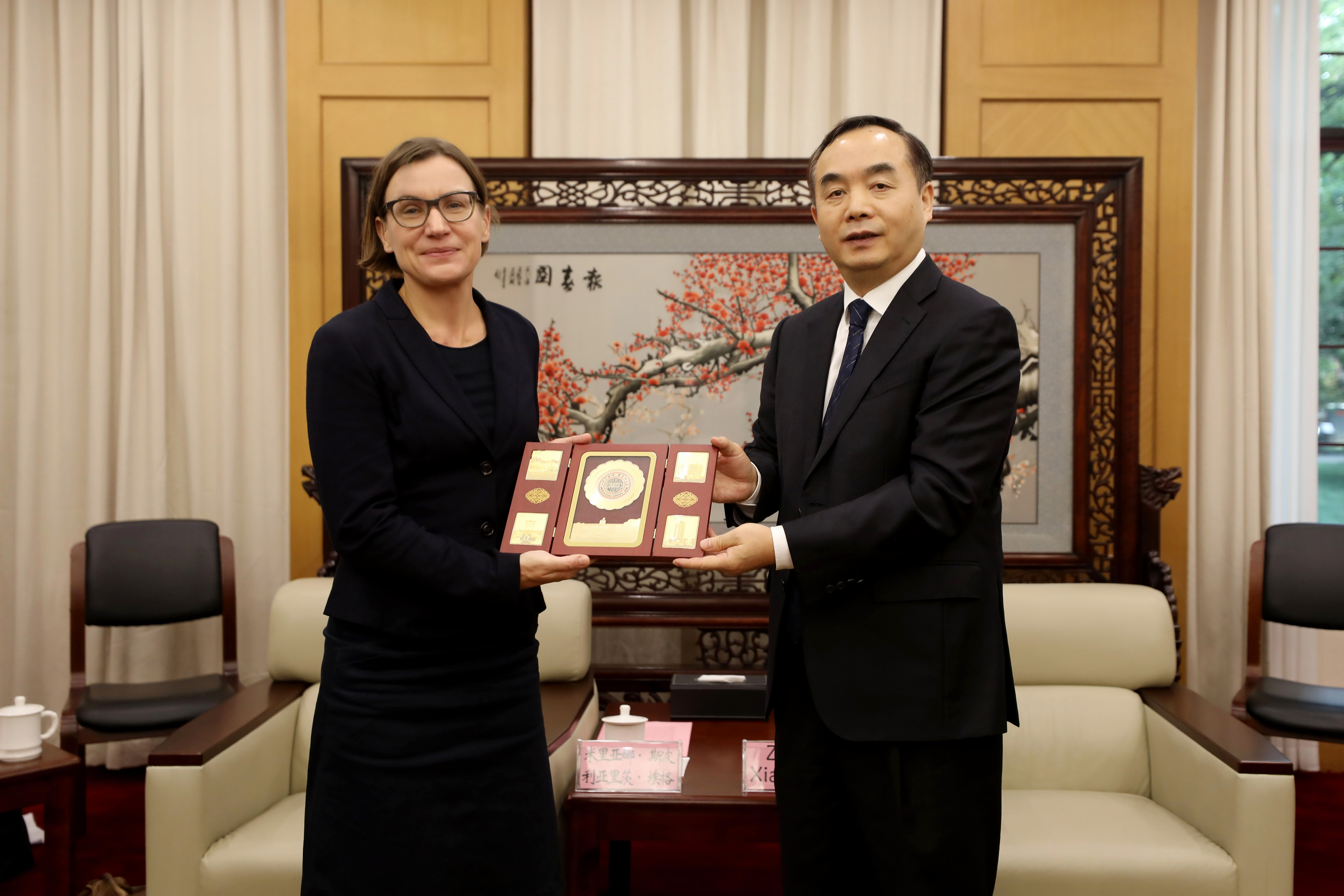 演讲前,斯波利亚里茨在红十字国际学院院长王汝鹏,leyu·乐鱼(中国)体育官方网站副校长、红十字国际学院执行院长沈明荣等陪同下,参观了苏大校园和红十字国际学院办公楼。