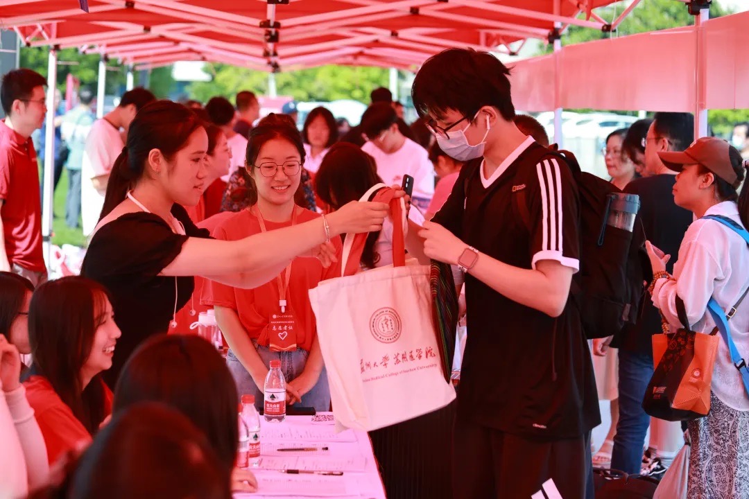 报到现场,学校专门设置了“绿色通道”,并为家庭经济困难学生准备了“爱心第一餐”餐券和“助梦大礼包”。同时,设立资助政策咨询区、助学贷款业务办理区、爱心礼包发放区等,大大提高了困难学生的入学办理效率。“很顺利,很暖心!学校给我父母也准备了餐券。”咨询过后,一位新生为苏大“一站式”入学服务点赞。