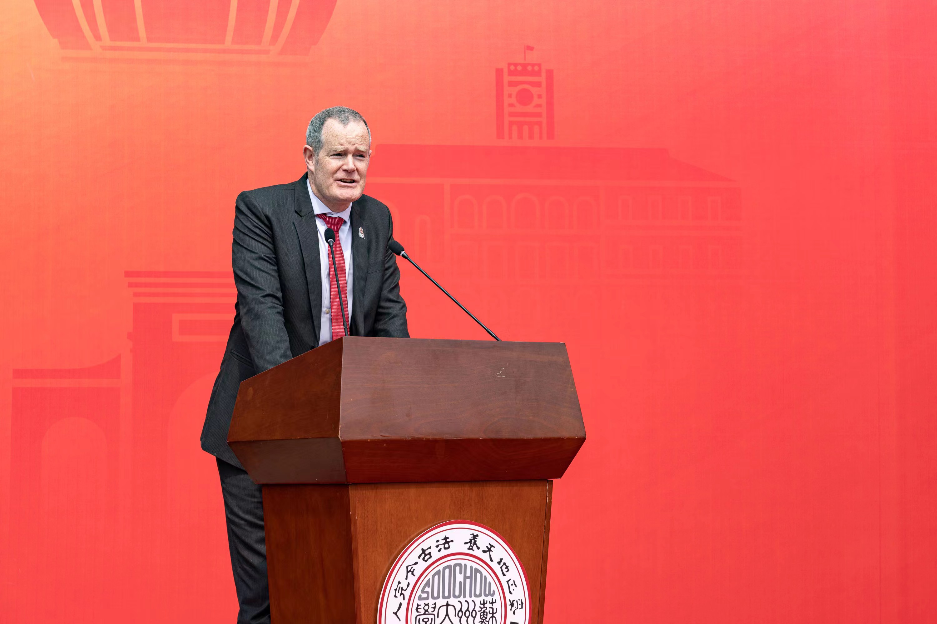 李孝峰在致辞中指出,一直以来,学校十分重视并大力推进国际合作与交流工作,积极扩大师生国际交流规模,主动“走出去”,建立携手共赢的“朋友圈”,与全球200余所境外高校建立合作关系。同时将目光投向世界,加大力度“引进来”,不断增强来苏留学的吸引力,目前校园里有来自全球五大洲70多个国家的1100余名留学生。未来,学校也将以更大的格局、更多的智慧去开创教育对外开放新局面,以更高的眼光、更开放的姿态推动更加广泛的合作与交流。