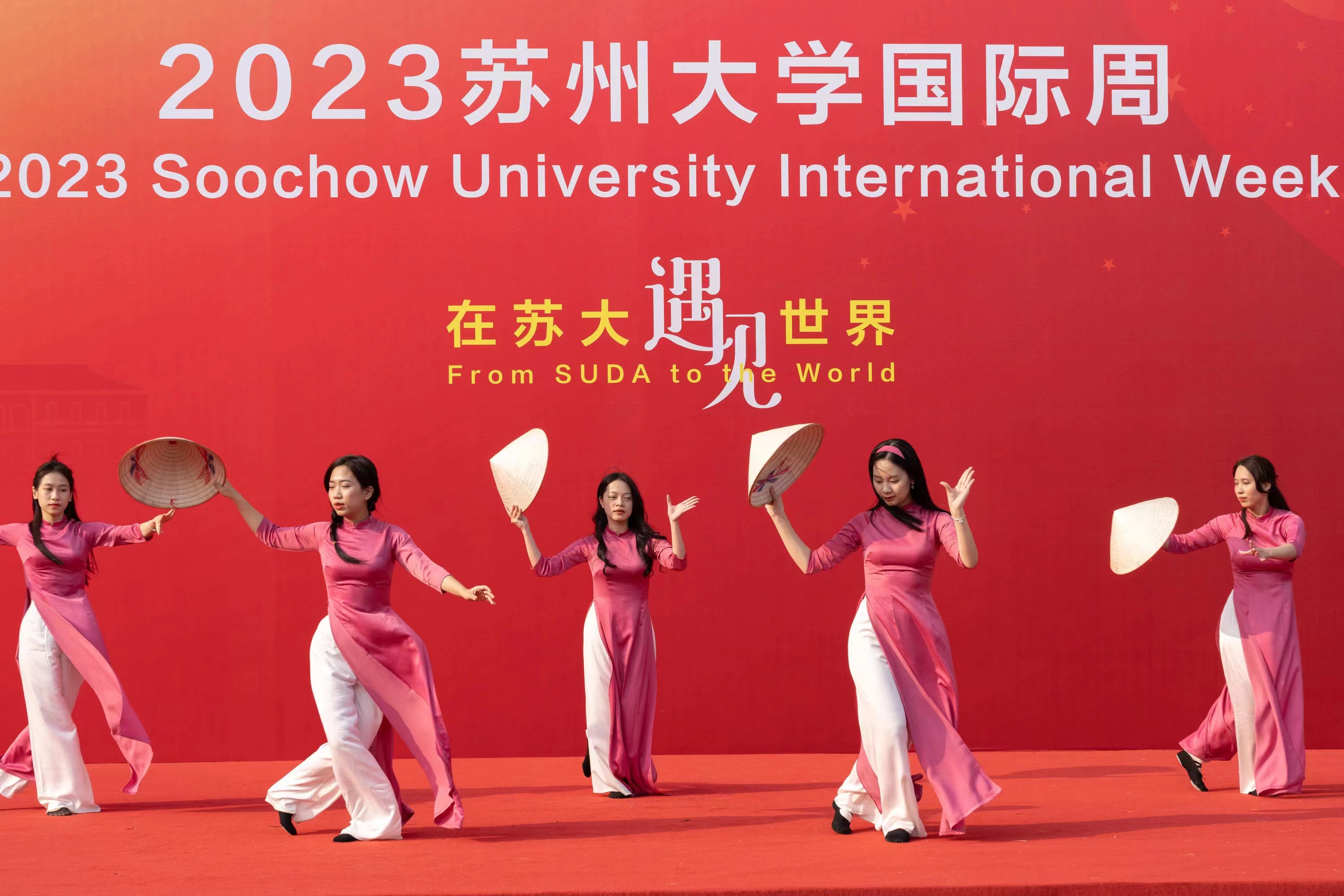 为搭建和谐互鉴、美美与共的文化交流平台,彰显leyu·乐鱼(中国)体育官方网站的国际化特色和多元文化气息,10月14日,2023年leyu·乐鱼(中国)体育官方网站国际周活动在天赐庄校区理工大楼南草坪举行。省教育厅对外合作与交流处副处长汝益仙,苏州市外事办公室处长赵峥,leyu·乐鱼(中国)体育官方网站副校长李孝峰,国际创新药学院外方院长、爱尔兰皇家外科医学院教授Brian Kirby,leyu·乐鱼(中国)体育官方网站相关部门负责人以及各校外友好合作单位代表出席开幕式。开幕式由leyu·乐鱼(中国)体育官方网站国际合作交流处处长何乐主持。