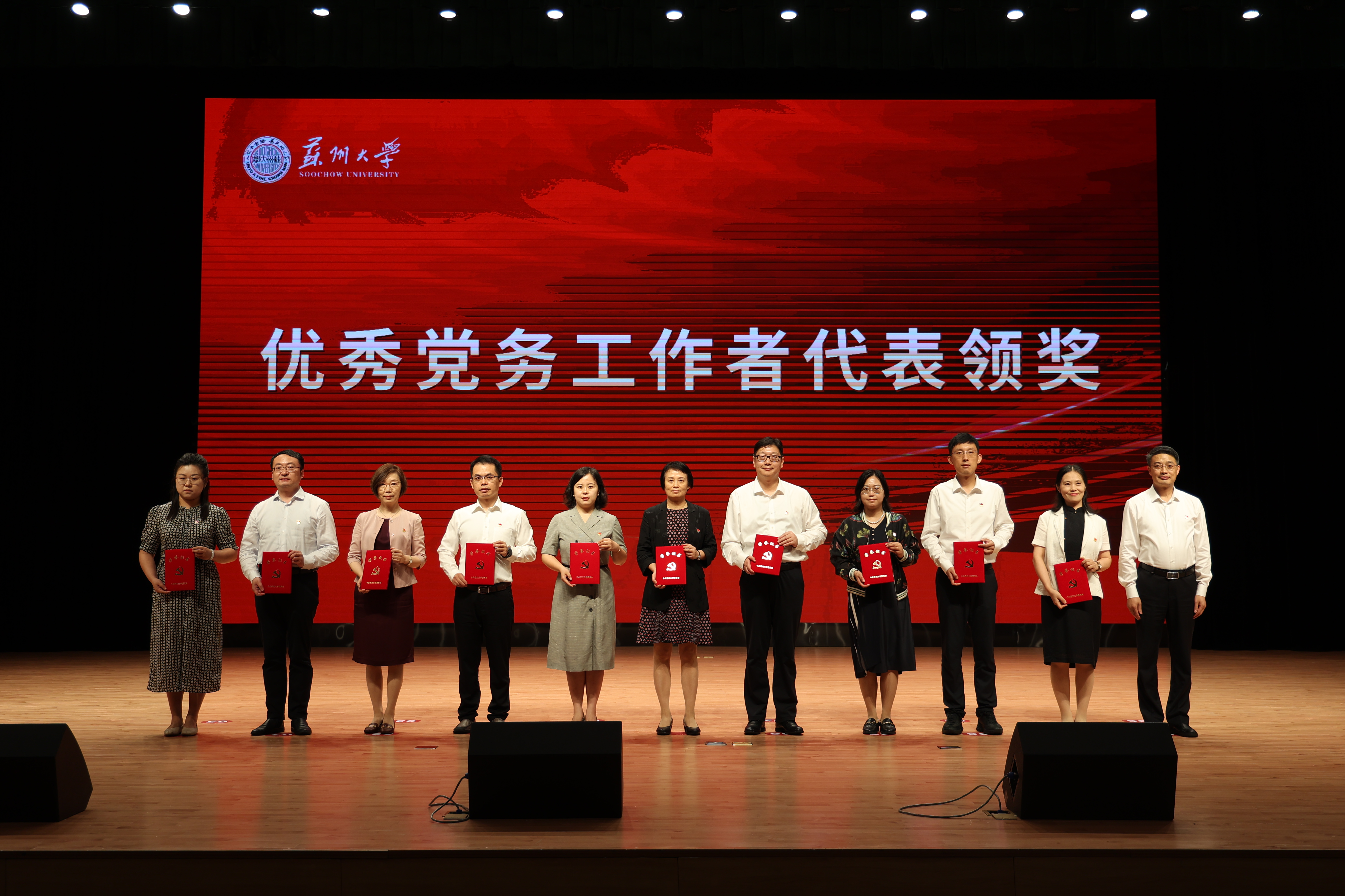 在苏校领导,校党委委员,纪委委员,各党群部门主要负责人,各党(工)委书记、副书记,优秀共产党员、优秀党务工作者和先进基层党组织代表,教师党支部书记和学生党员代表,全体专兼职组织员等出席大会。大会由校党委副书记邓敏主持。