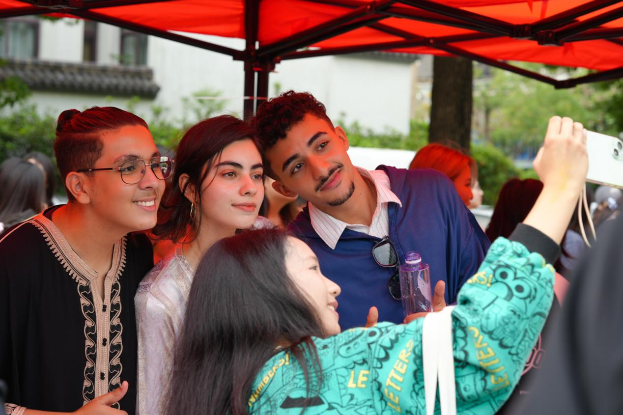 来自苏州医学院的马来西亚留学生陈佳齐身着传统娘惹服饰,开心地说道:“今天我认识了许多不同国家的朋友,在和他们的交流沟通中,我感受到了多元文化的交融与美好。”来自传媒学院的2024级越南留学生黄氏翠银第一次参加国际周的活动,难掩激动的心情:“各国美食都有独特风味,非常感谢学校举办国际周的活动,让我们能集中体验到如此多元的国际文化。”
