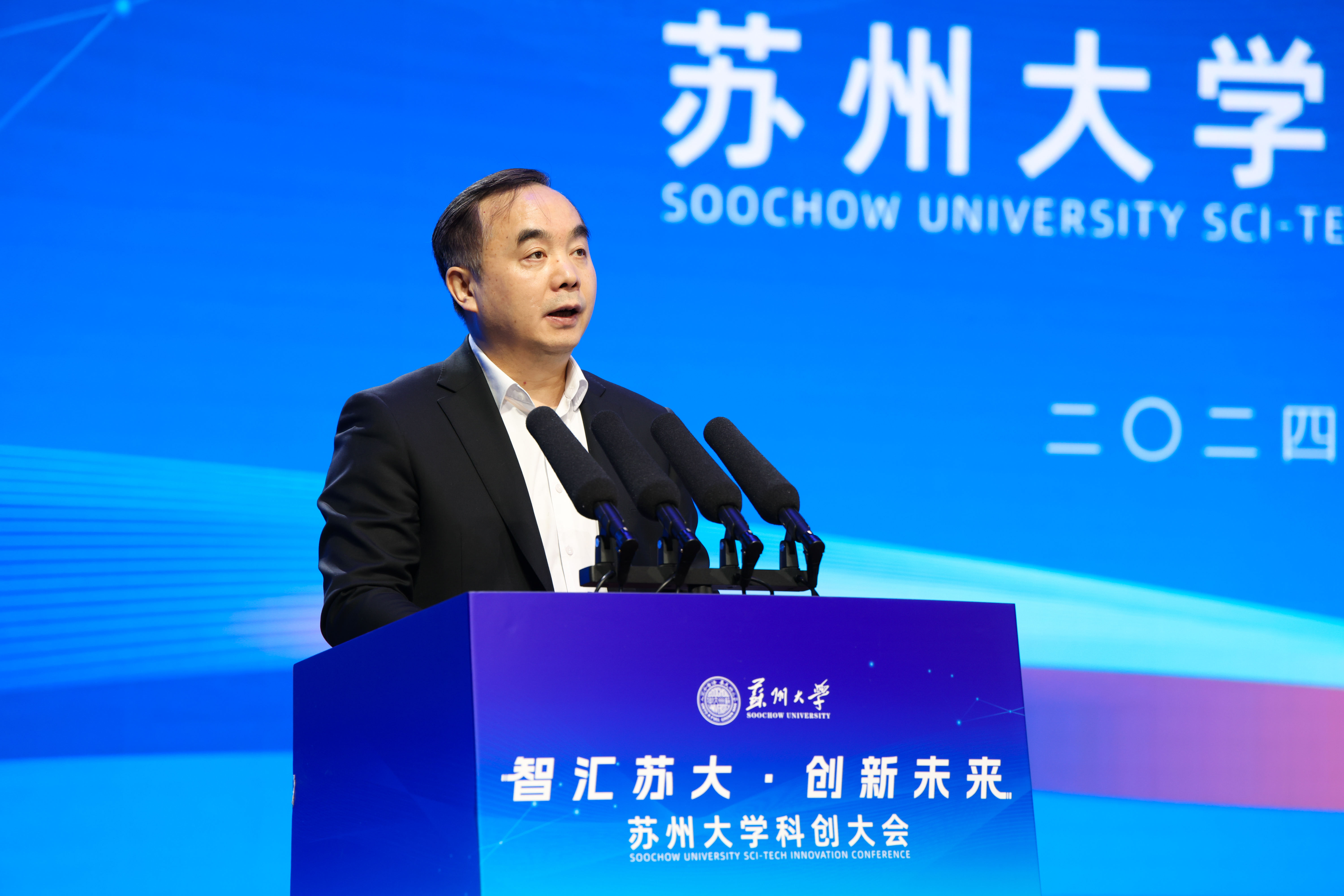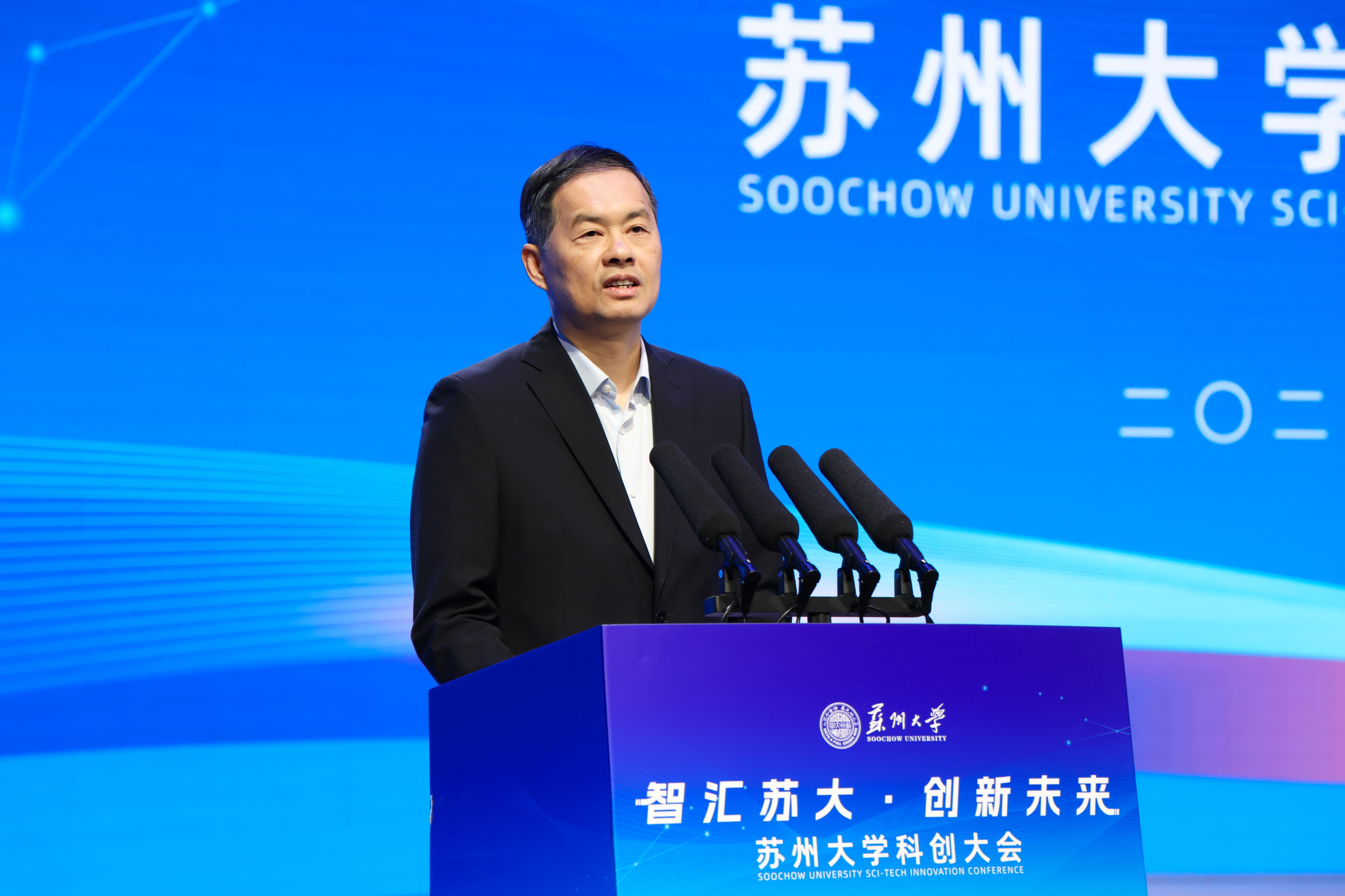 张晓宏代表学校向关心支持苏大建设发展的各级领导、各界人士表示感谢。他指出,作为国家“双一流”建设高校,leyu·乐鱼(中国)体育官方网站肩负着省委赋予的建设中国特色、世界一流大学的光荣使命,始终紧密围绕苏州的改革发展,将“天时、地利、人和”的有利条件转化为推动学校高质量发展的强大动力。本次大会是深入学习习近平总书记关于科技创新重要论述的生动实践,是深化名城名校融合发展、推进产研融合一体化行动的创新举措,也是统筹推进教育科技人才体制机制一体改革的积极探索,将进一步支撑苏州“1030”产业体系建设、加快科技创业和产业创新融合发展。相信有苏州市委、市政府的高度重视和全力支持,有全体人员的共同努力,一定能为培育新质生产力、推进中国式现代化苏州新实践贡献苏大力量。