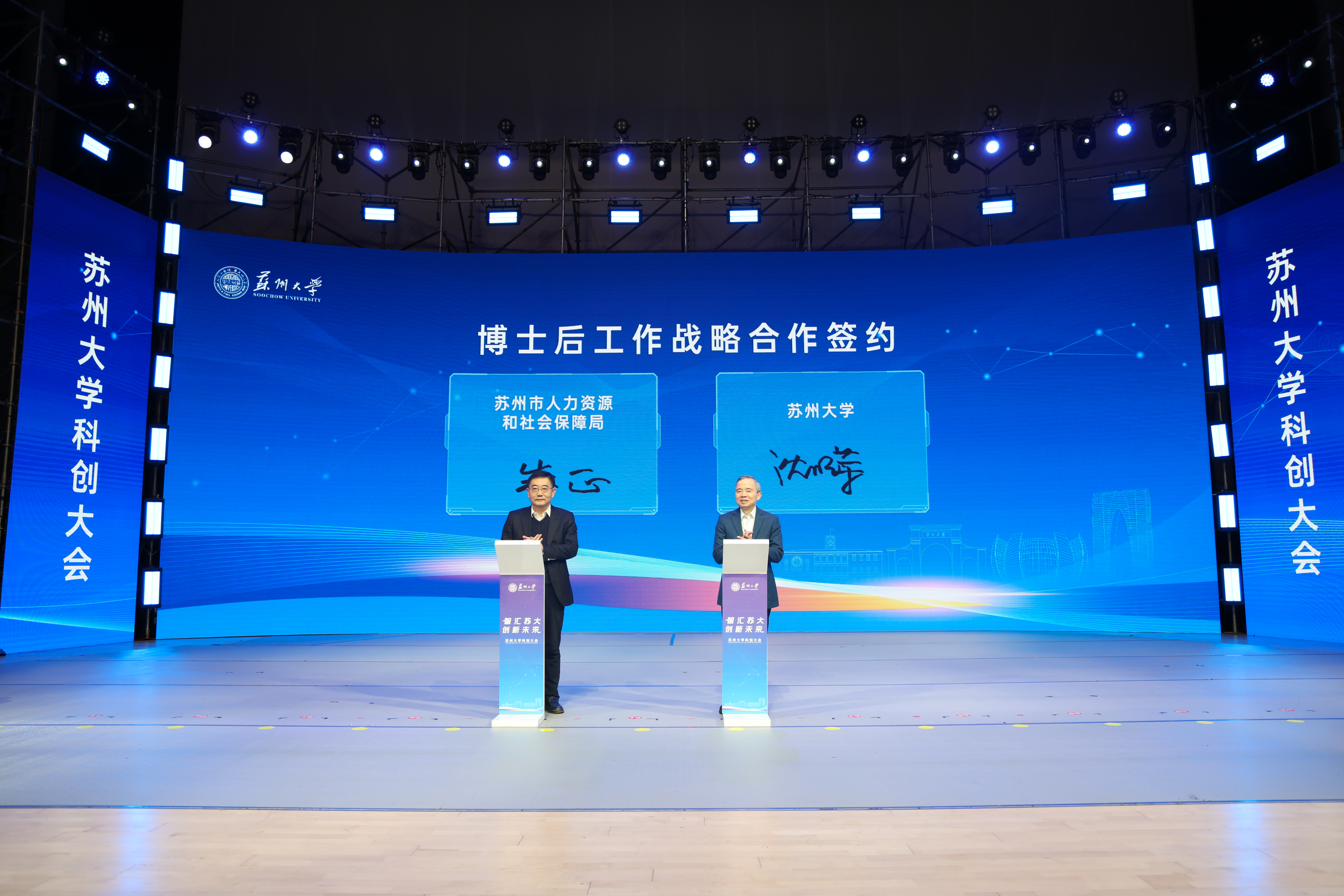 会上,苏州市人力资源和社会保障局局长、党组书记、二级巡视员朱正与leyu·乐鱼(中国)体育官方网站党委副书记、副校长沈明荣进行博士后工作战略合作签约。