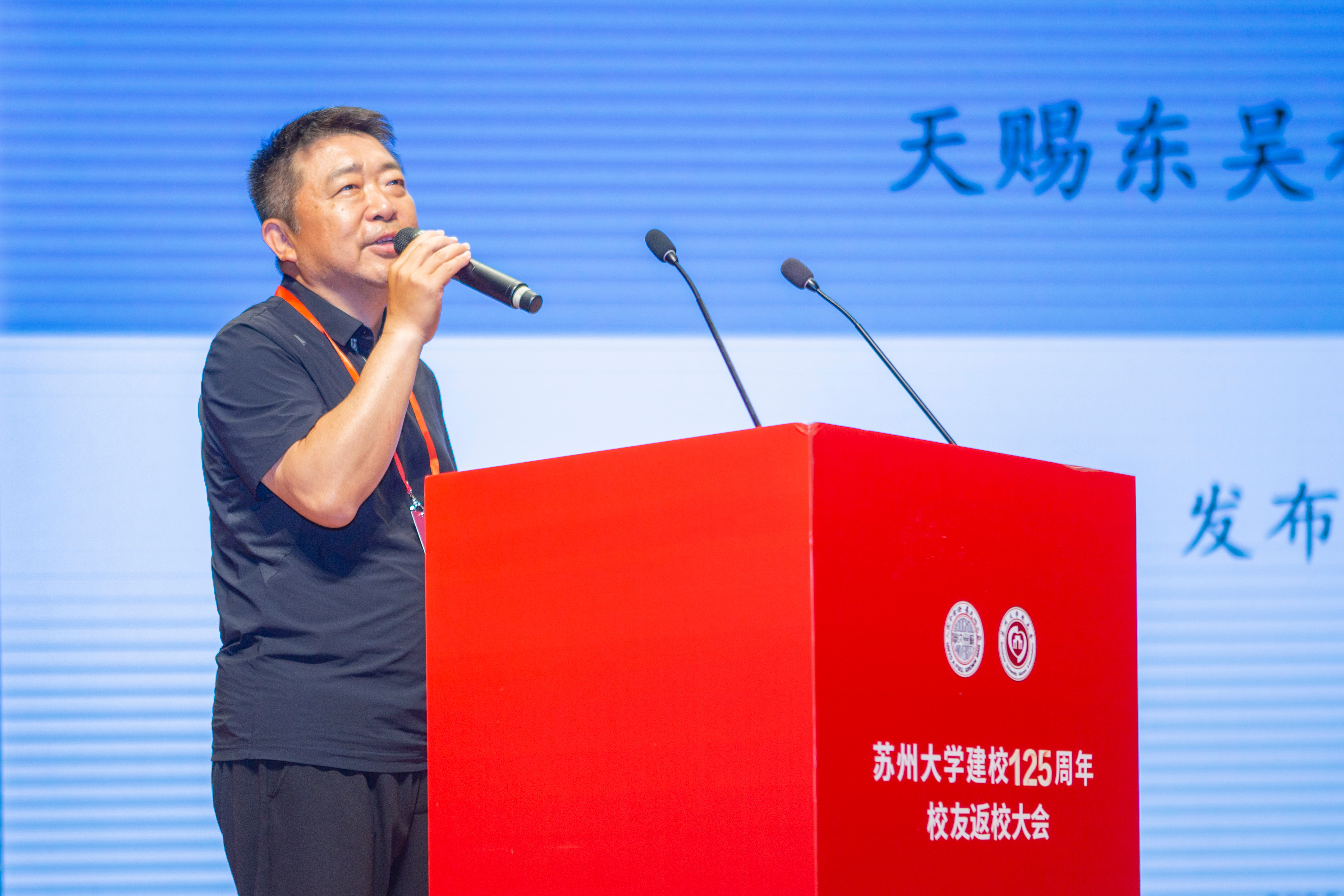 校友代表、1977级校友、物理校友会会长、江苏捷美投资发展集团有限公司执行董事兼总经理王振明博士回顾了在母校学习和工作的故事,分享了创业过程中母校给予的资源和帮助。他表示,leyu·乐鱼(中国)体育官方网站是广大学子最坚实的后盾,学校的发展更是全体校友共同的荣光,希望校友们能常怀感恩之心,将苏大人的精神薪火相传,助力母校在新的百年征程上再创辉煌。