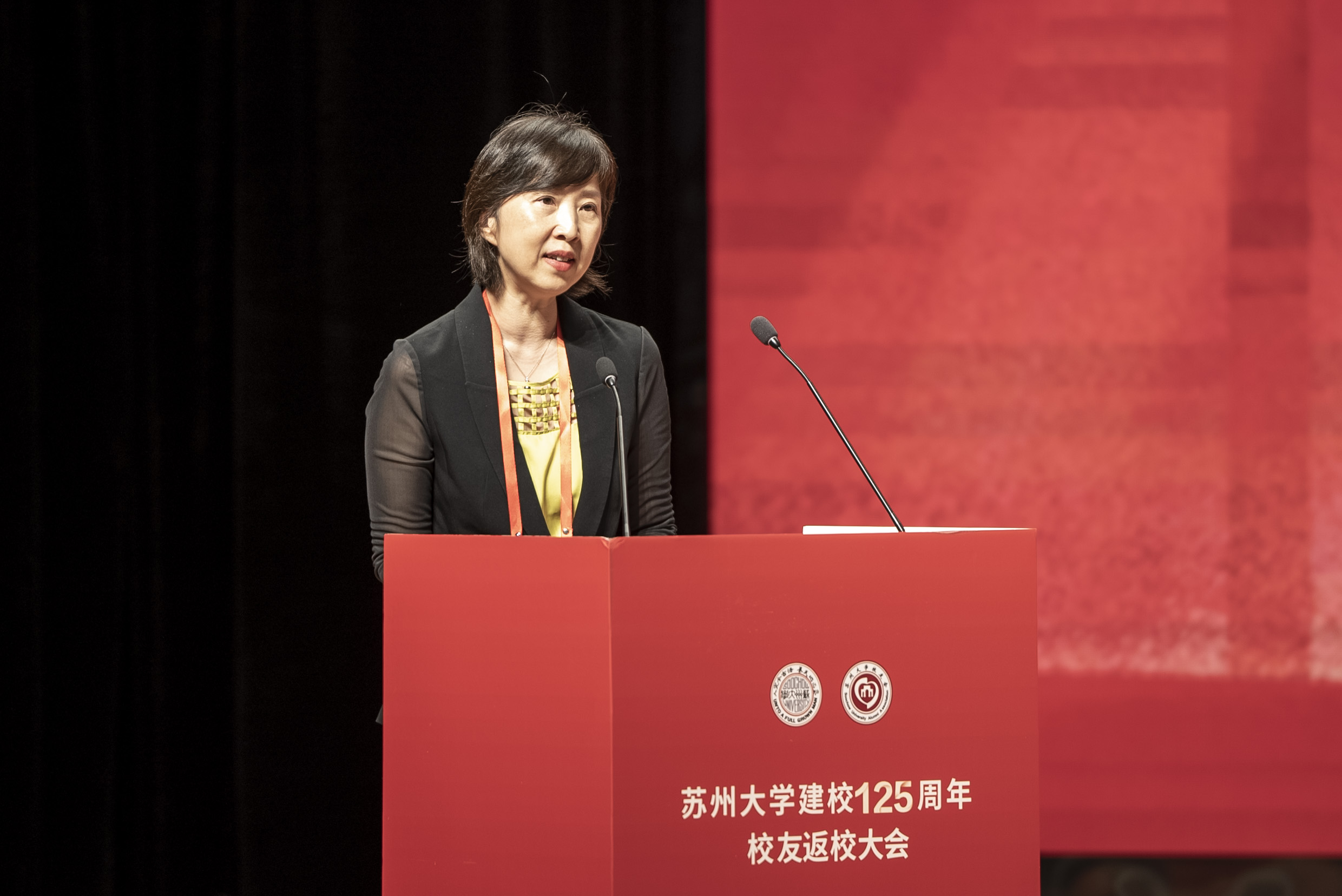 洪晔代表学校向各位校友致以热烈欢迎,向长期以来关心和支持母校建设发展的广大校友表示衷心感谢。她围绕人才培养、科研创新、教学改革等内容介绍了近年来学校的发展建设成果。她指出,校友们以赤诚之心回馈母校,更以实际行动践行着苏大校训。未来,学校将着力构建双向赋能的校友服务体系,进一步完善校友网络,打造全球苏大人发展共同体,实现校友与母校的共生共融。期待能与海内外校友携手,共同为学校建设中国特色世界一流大学的目标贡献力量。