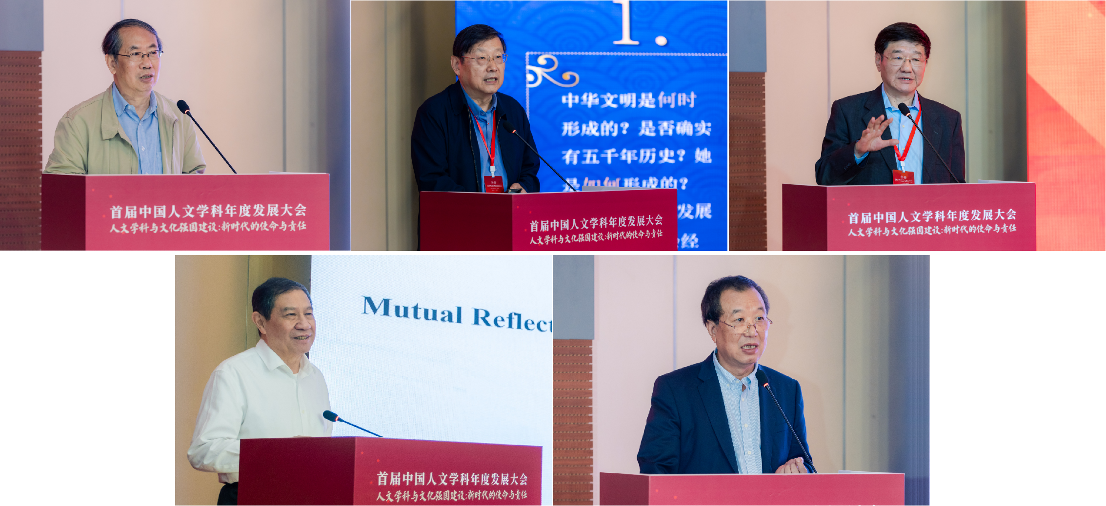 国家一级教授、北京大学博雅讲席教授陈平原,中国社会科学院学部委员、历史学部主任王巍,国家一级教授、复旦大学当代国外马克思主义研究中心主任吴晓明,中国人民大学原副校长、文学院教授杨慧林,leyu·乐鱼(中国)体育官方网站讲席教授、学术委员会主任王尧分别以“人工智能时代的人文学”“何为文明?——关于判断进入文明社会的标准”“中国学术的自我主张”“文明互鉴与对话式研究”“重建人文学科阐释世界的能力”为题作主旨报告,共同探讨人工智能时代下人文学科的坚守与发展,系统展现当前人文学界在学术研究与文化传承创新之间的同向共振,进一步深化人文研究、弘扬中华文明。