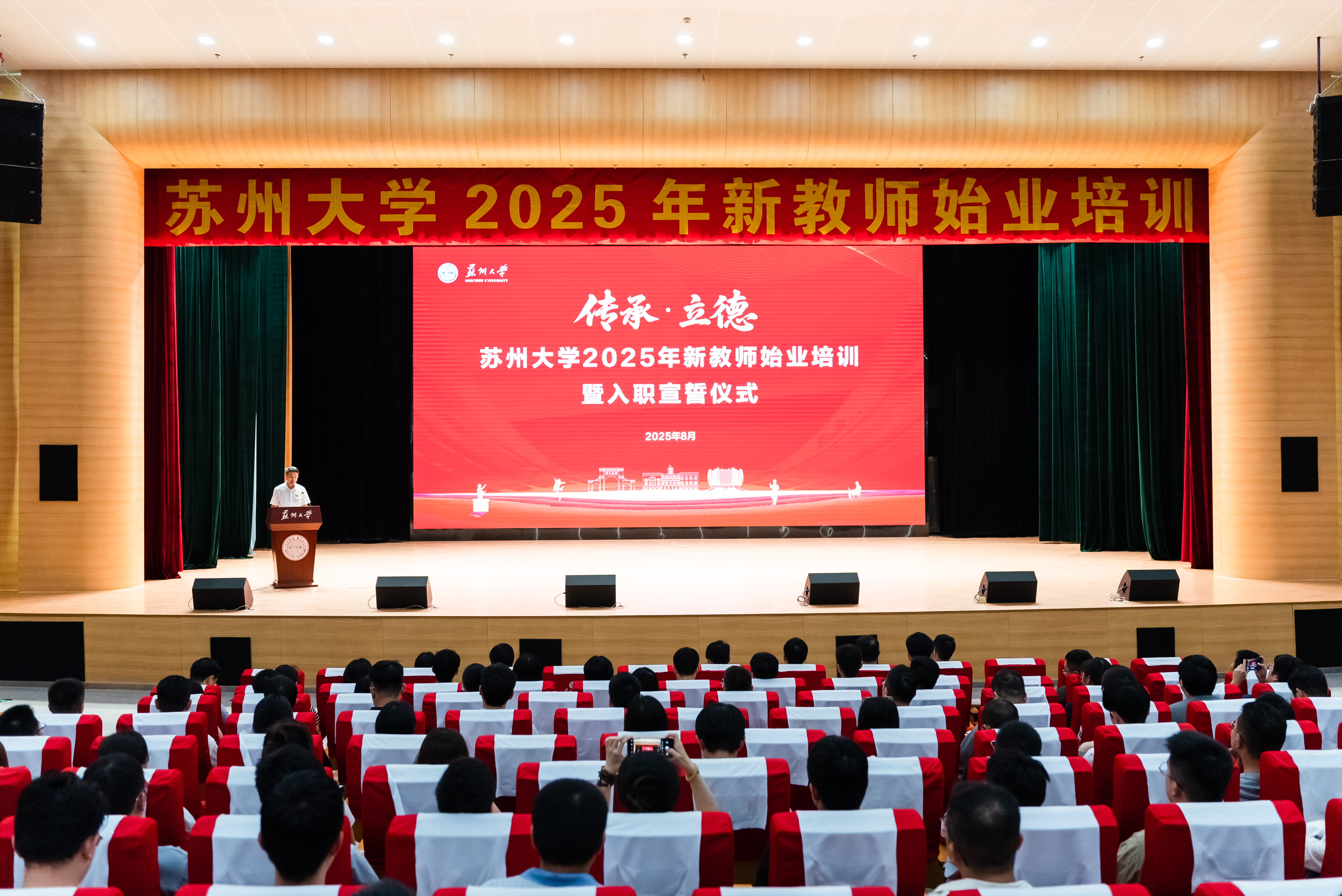 入职宣誓仪式后,全体新教工参加了为期四天的始业培训。培训围绕“初识东吴”和“教育家精神涵养”两部分展开,包括现场授课、线上数字平台学习、国情研修、社会实践等丰富内容。
