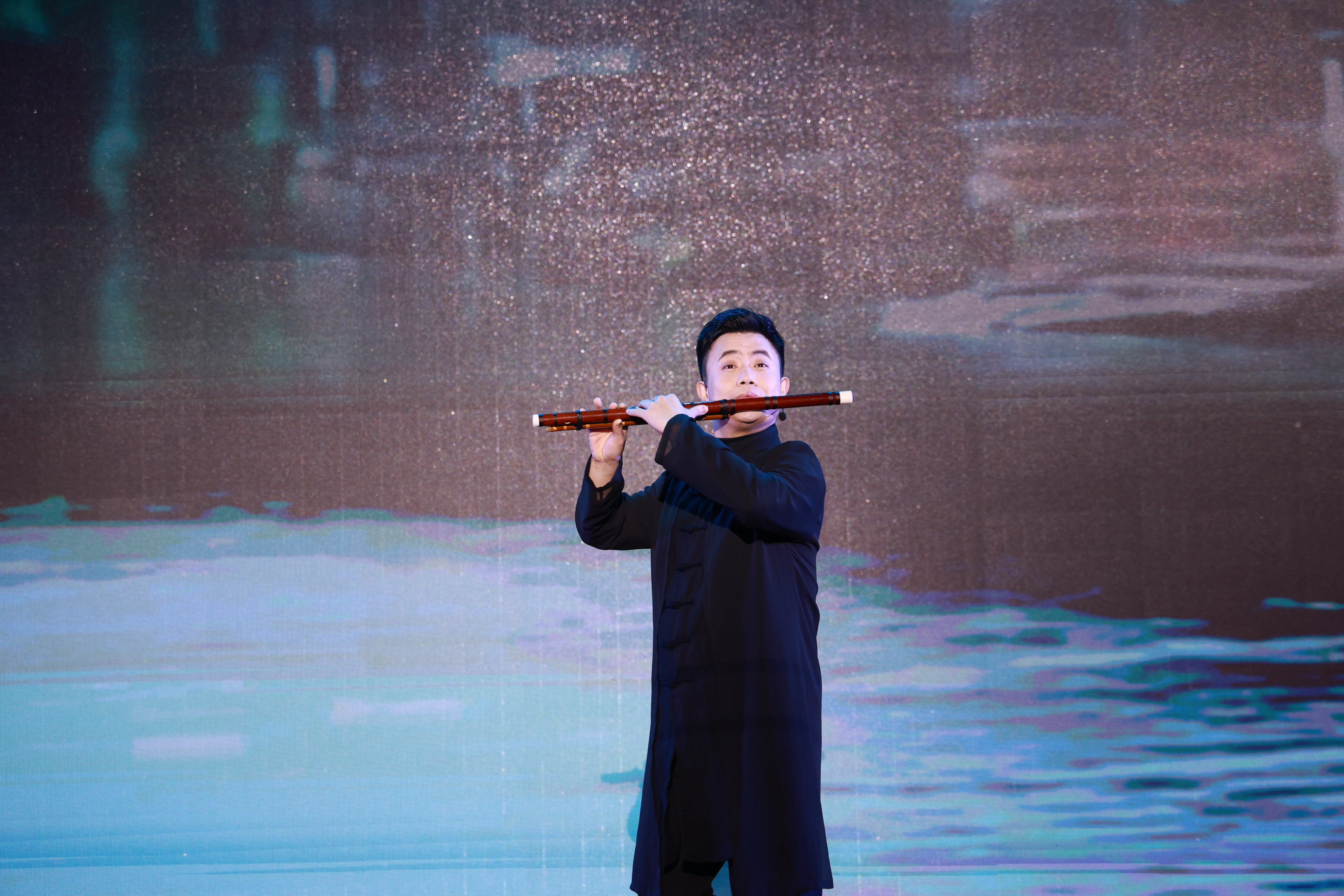 竹笛悠悠、空灵悠远,艺术教育中心教师马述谏用一曲《水乡船歌》勾勒出烟雨江南的灵秀画卷。诗朗诵《天赐情怀》讴歌了苏大人薪火相传的人文精神与赤子情怀。由音乐学院教师卞浩雄、卓琳倾情演唱的《领航》,以磅礴气势汇聚出开创未来的奋进力量。