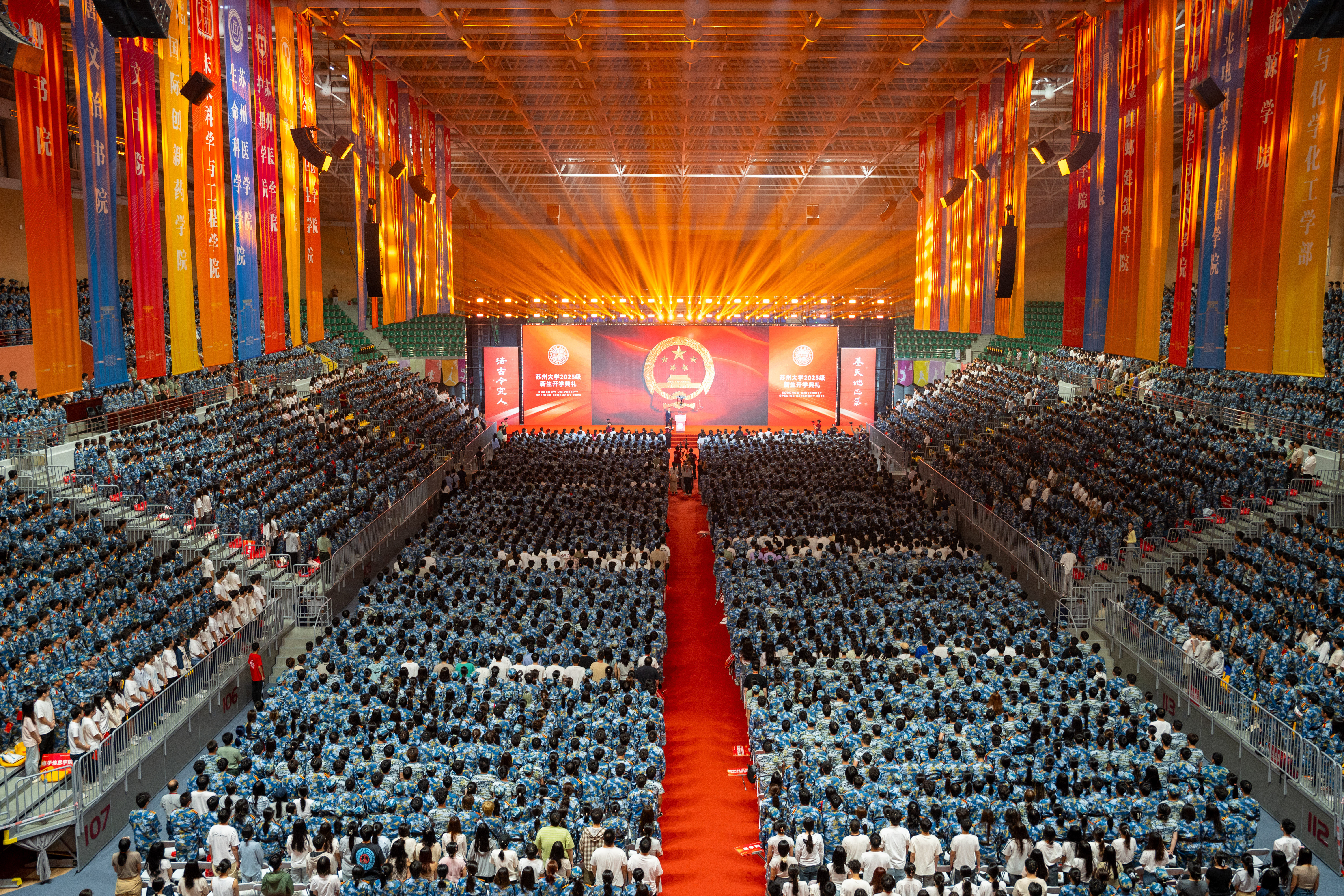 “真正的改变,始于每一件小事的坚持。”张桥从“日拱一卒”的内涵展开,介绍了学校持续改善办学条件的行动,并以一代代苏大人的亲身经历,勉励新同学要相信并掌握“日拱一卒”的力量,不断耕耘,将其作为在苏大生活、学习、探索世界的方式。
