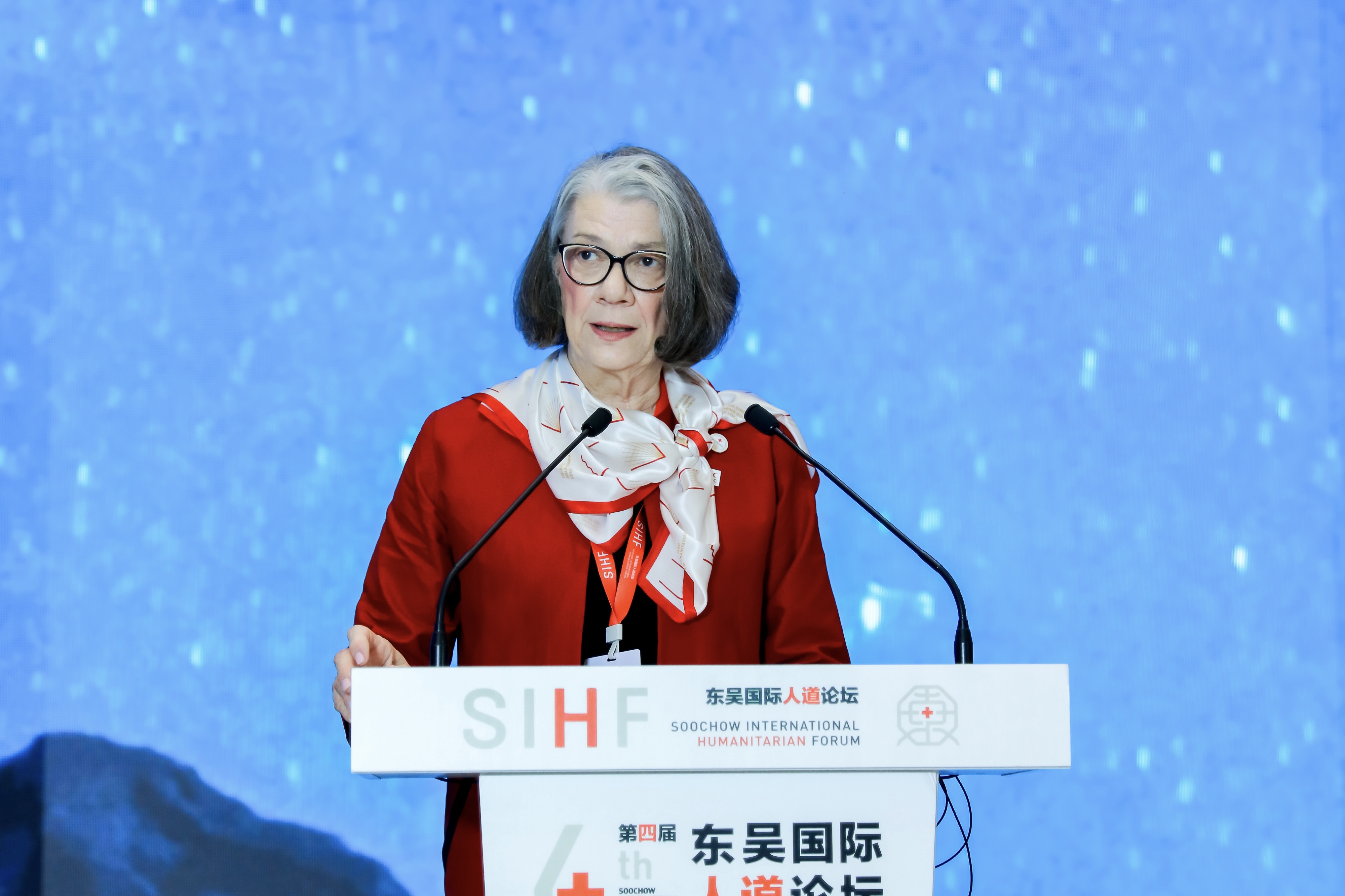 凯特·福布斯以“人工智能与人道原则:呼吁负责任的行动”为题作主旨演讲。她指出,当今时代,我们经历着世界的多极化趋势,也见证着非凡的技术进步。在人道主义事业中,AI已经在重塑我们预测、应对危机和从危机中恢复的方式。人道主义工作者,而非AI,才是人道需求、优先级和人道援助的核心主导者,采用“以人为本”方法和“社区参与”方式设计的AI才更符合人道主义事业的原则。