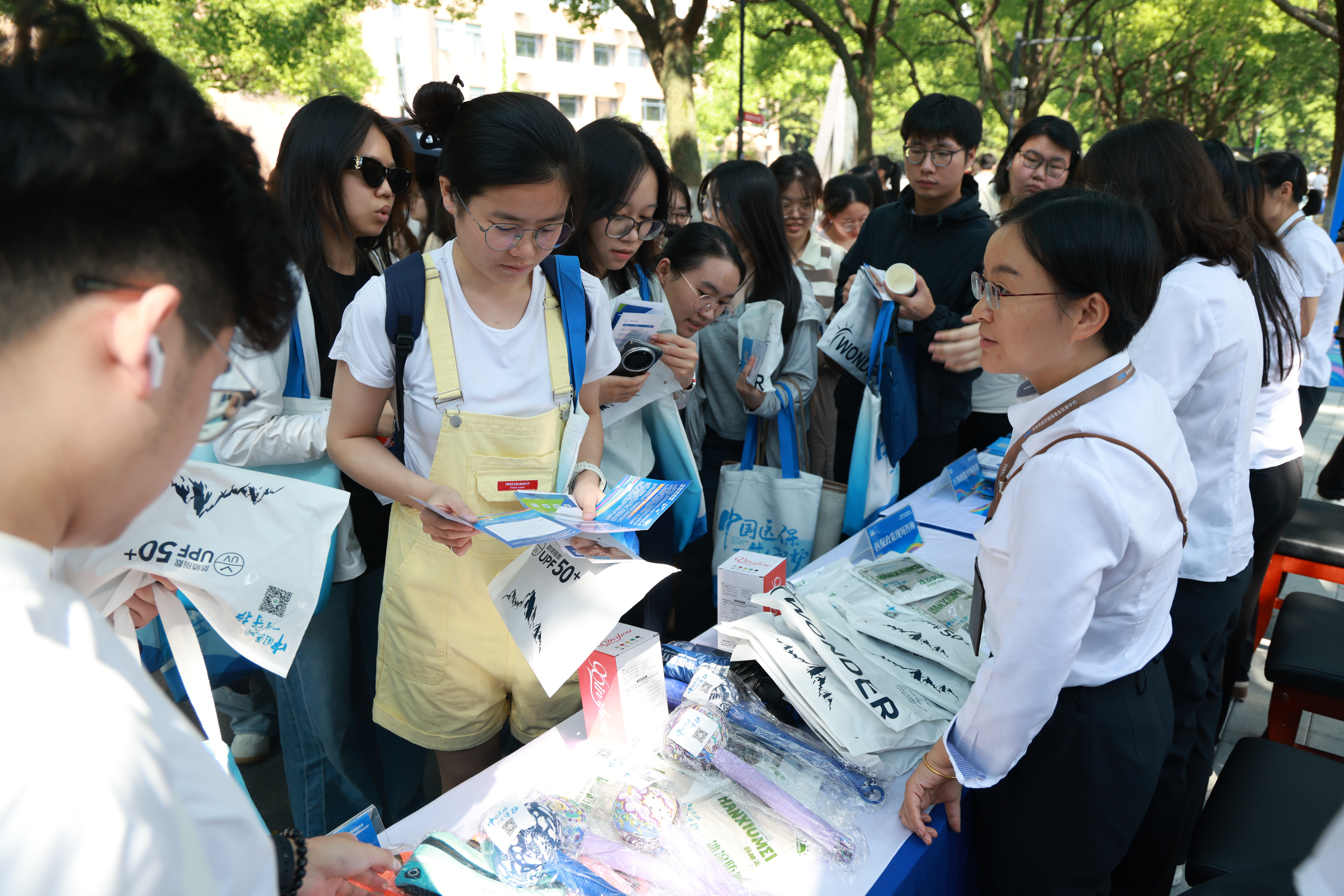 访谈结束后,主办方在现场布置了政策展板、咨询互动摊位,方便学生了解掌握参保的待遇政策、办理流程、体验智慧医保服务等。
