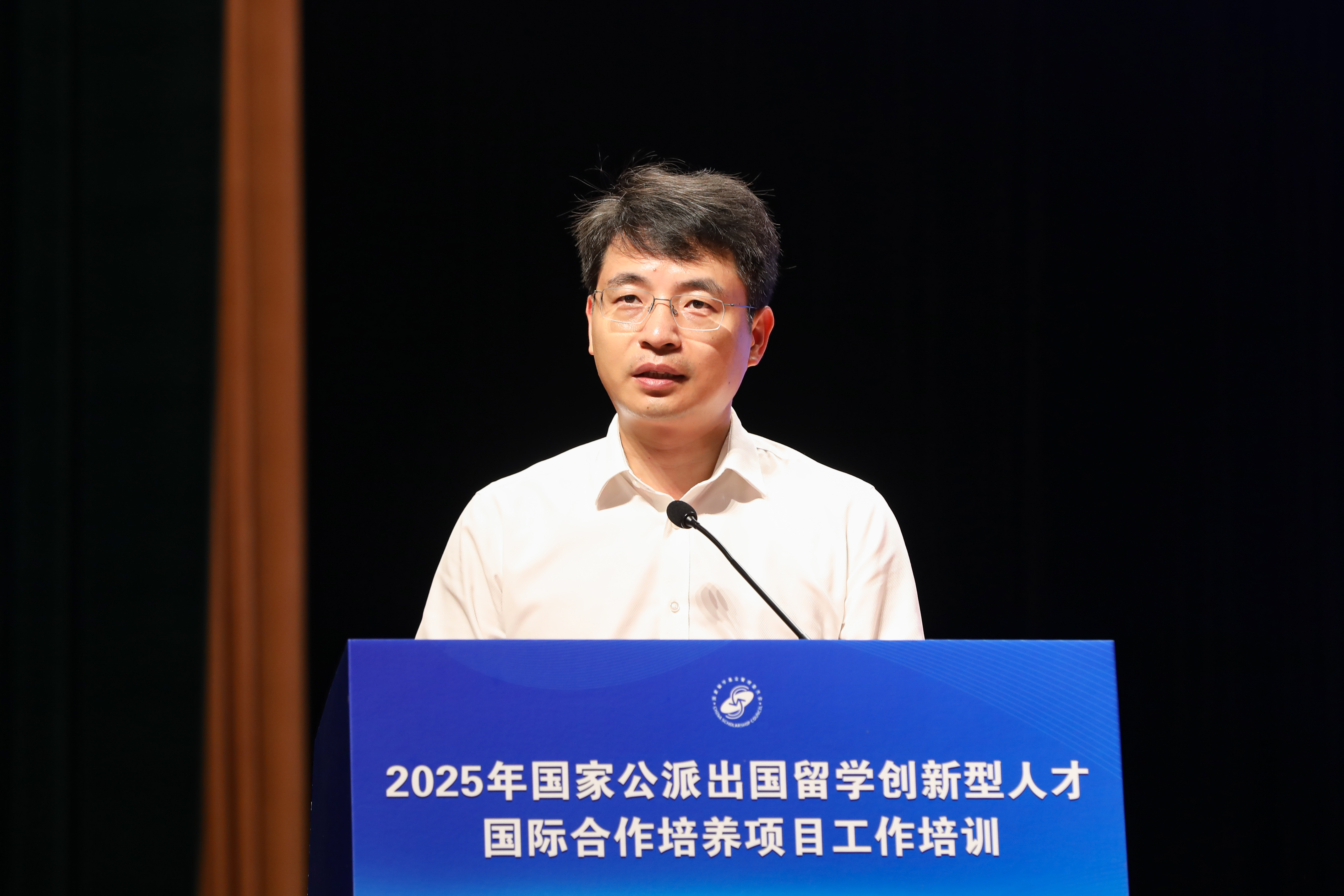 生建学作题为《紧密围绕国家战略 全面深化改革创新 以创新项目高质量发展助力国家公派留学新征程》的主旨报告。他介绍了创新项目立项实施11年来探索构建的体系框架,并指出面对教育强国建设的新使命、新要求与国际形势复杂多变的新挑战,要坚持破立并举、引育并重、督导并行、质效并进,以创新项目带动学科建设、人才培养,助力高水平教育对外开放与教育强国建设。他强调,项目单位必须转变理念、角色及方法,进一步压实主体责任,将项目成效转化成推动本单位高质量发展、服务国家战略需求的动能,为加快建设教育强国、科技强国、人才强国贡献扎实力量。