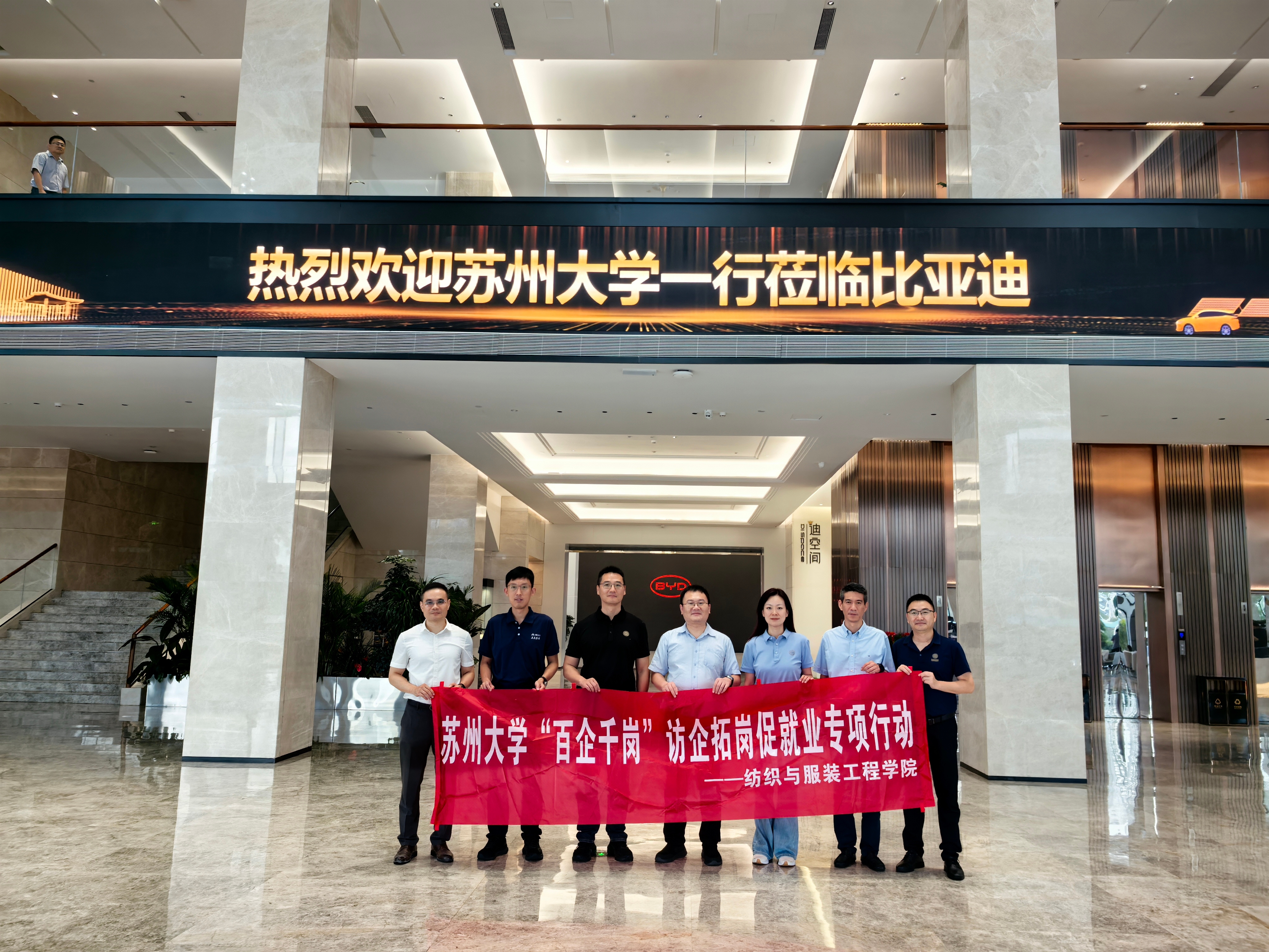 6月28日,leyu·乐鱼(中国)体育官方网站纺织与服装工程学院联合国内合作发展处、招生就业处赴深圳全棉时代科技有限公司、比亚迪股份有限公司开展访企拓岗行动,并走访深圳校友会,搭建“校—企—友”协同育人平台,为毕业生高质量就业拓宽路径。国内合作发展处处长、校友总会秘书长程晓军、副处长刘子静,纺织与服装工程学院党委副书记、副院长甄勇、学工办主任季彦斐,校招生就业处张维延等参加活动。